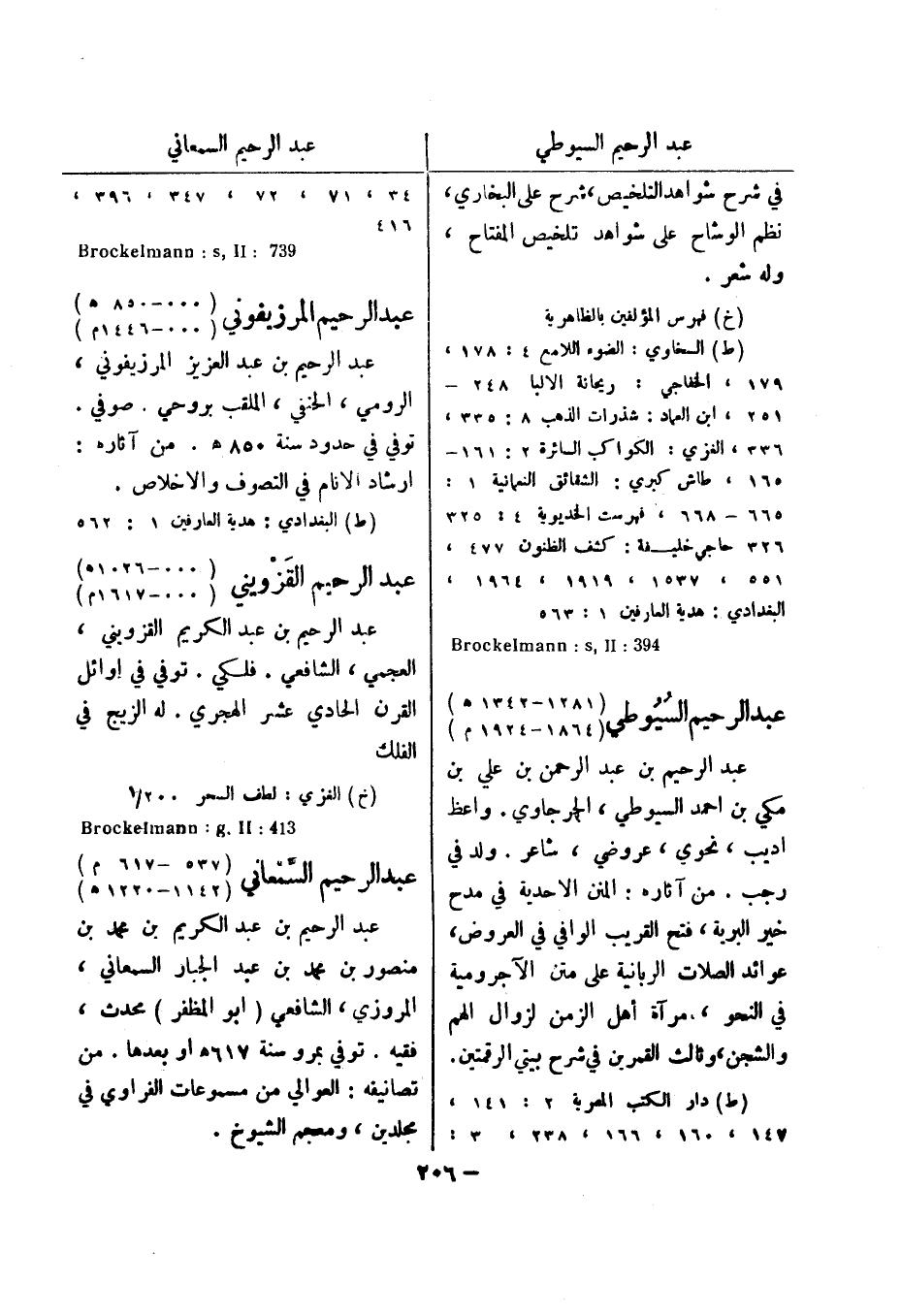 (خ) فهرس المؤلفين بالظاهرية (ط) السخاوي: الضوء اللامع 4: 178، 179، الخفاجي: ريحانة الالبا 248 - 251، ابن العماد: شذرات الذهب 8: 335، 336، الغزي: الكواكب السائرة 2: 161 - 165، طاش كبري: الشقائق النعمانية 1: 665 - 668، فهرست الخديوية 4: 325 326 حاجي خليفة: كشف الظنون 477، 551، 1537، 1919، 1964، البغدادي: هدية العارفين 1: 563 394: Brockelmann: s , II عبد الرحيم السيوطي (1281 - 1342 هـ) (1864 - 1924 م) عبد الرحيم بن عبد الرحمن بن علي بن مكي بن احمد السيوطي، الجرجاوي.