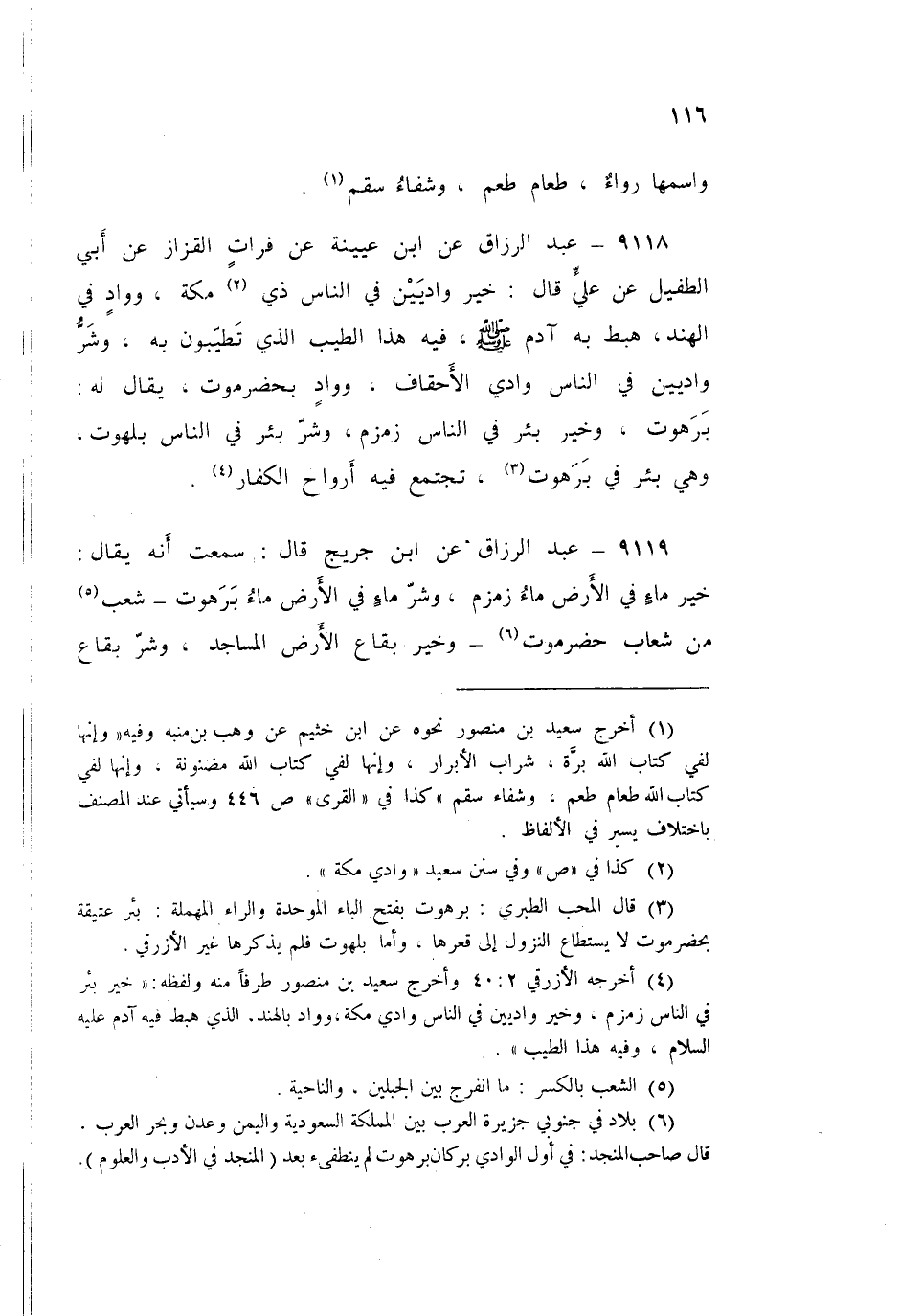 ٩١١٩ - عَنِ ابْنِ جُرَيْجٍ قَالَ: " سَمِعْتُ أَنَّهُ يُقَالُ: خَيْرُ مَاءٍ فِي الْأَرْضِ مَاءُ زَمْزَمَ، وَشَرُّ مَاءٍ فِي الْأَرْضِ مَاءُ بَرَهَوْتَ - شِعْبٌ مِنْ شِعَابِ حَضَرَمَوْتَ - وَخَيْرُ بِقَاعِ الْأَرْضِ الْمَسَاجِدُ، وَشَرُّ بِقَاعِ الْأَرْضِ الْأَسْوَاقُ "