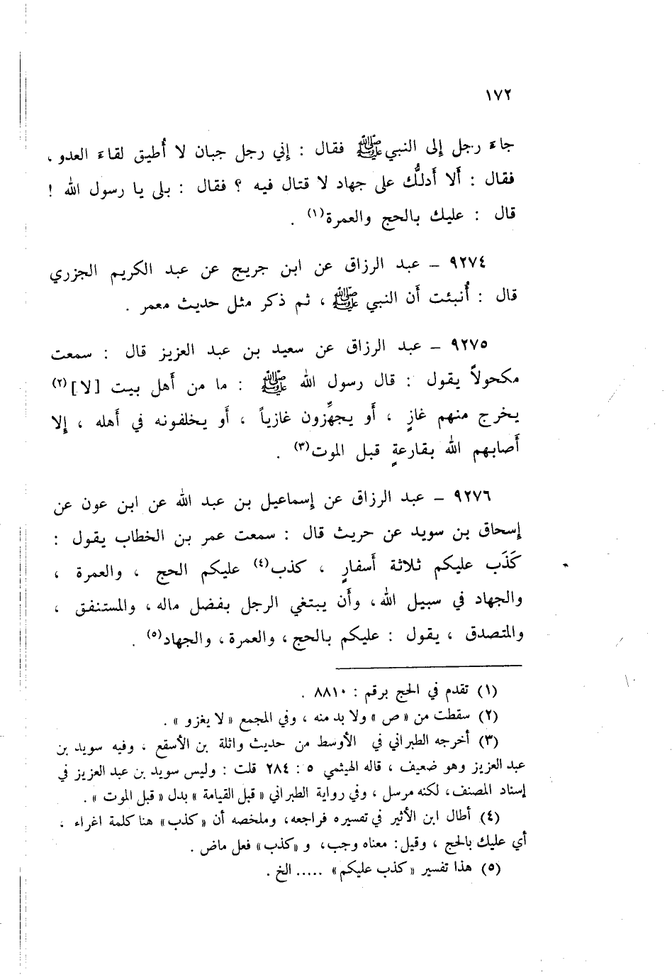 ٩٢٧٧ - عَنِ الثَّوْرِيِّ، عَنْ أَبِي حَيَّانَ، وَغَيْرِهِ قَالَ: " كَذَبَ عَلَيْكُمُ الْحَجُّ وَالْعُمْرَةُ يَقُولُ: عَلَيْكُمْ بِالْحَجِّ وَالْجِهَادِ "