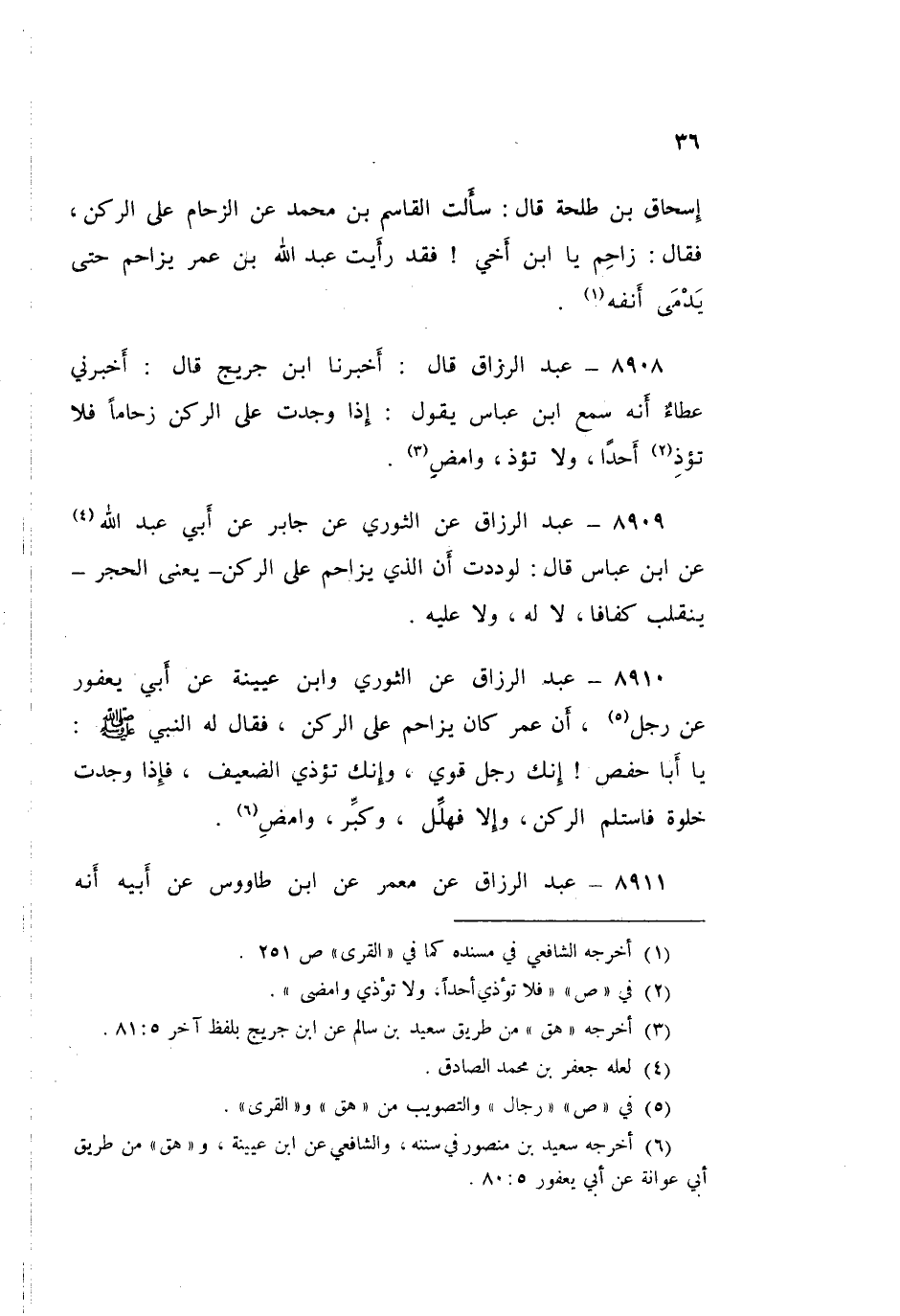 ٨٩٠٩ - عَنِ الثَّوْرِيِّ، عَنْ جَابِرٍ، عَنْ أَبِي عَبْدِ اللَّهِ، عَنِ ابْنِ عَبَّاسٍ قَالَ: «لَوَدِدْتُ أَنَّ الَّذِي يُزَاحِمُ عَلَى الرُّكْنِ ـ يَعْنِي الْحَجَرَ ـ يَنْقَلِبُ كَفَافًا لَا لَهُ وَلَا عَلَيْهِ»