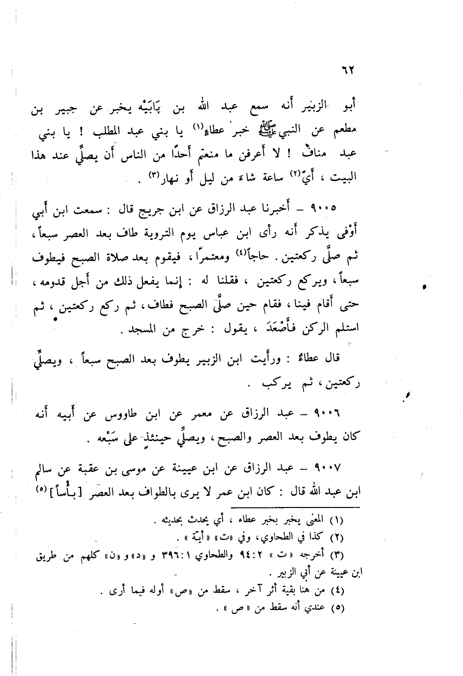 ٩٠٠٦ - عَنْ مَعْمَرٍ، عَنِ ابْنِ طَاوُسٍ، عَنْ أَبِيهِ: «أَنَّهُ كَانَ يَطُوفُ بَعْدَ الْعَصْرِ وَالصُّبْحِ وَيُصَلِّي حِينَئِذٍ عَلَى سَبْعِهِ»