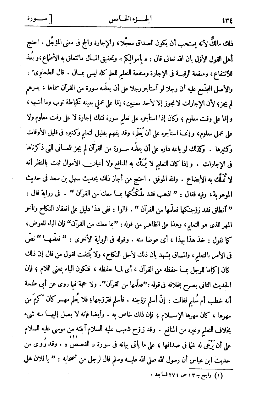 ذَلِكَ مَالِكٌ لِأَنَّهُ يُسْتَحَبُّ أَنْ يَكُونَ الصَّدَاقُ مُعَجَّلًا، وَالْإِجَارَةُ وَالْحَجُّ فِي مَعْنَى الْمُؤَجَّلِ. احْتَجَّ أَهْلُ الْقَوْلِ الْأَوَّلِ بِأَنَّ اللَّهَ تَعَالَى قَالَ: (بِأَمْوالِكُمْ) وَتَحْقِيقُ الْمَالِ مَا تَتَعَلَّقُ بِهِ الْأَطْمَاعُ، وَيُعَدُّ لِلِانْتِفَاعِ، وَمَنْفَعَةُ الرَّقَبَةِ فِي الْإِجَارَةِ وَمَنْفَعَةُ التَّعْلِيمِ لِلْعِلْمِ كُلِّهِ لَيْسَ بِمَالٍ. قَالَ الطَّحَاوِيُّ: وَالْأَصْلُ الْمُجْتَمَعُ عَلَيْهِ أَنَّ رَجُلًا لَوِ اسْتَأْجَرَ رجلا على أن يعلمه سورة الْقُرْآنِ سَمَّاهَا، بِدِرْهَمٍ لَمْ يَجُزْ، لِأَنَّ الْإِجَارَاتِ لَا تَجُوزُ إِلَّا لِأَحَدِ مَعْنَيَيْنِ، إِمَّا عَلَى عَمَلٍ بِعَيْنِهِ كَخِيَاطَةِ ثَوْبٍ وَمَا أَشْبَهَهُ، وَإِمَّا عَلَى وَقْتٍ مَعْلُومٍ، وَكَانَ إِذَا اسْتَأْجَرَهُ عَلَى تَعْلِيمِ سُورَةٍ فَتِلْكَ إِجَارَةٌ لَا عَلَى وَقْتٍ مَعْلُومٍ وَلَا عَلَى عَمَلٍ مَعْلُومٍ، وَإِنَّمَا اسْتَأْجَرَهُ عَلَى أَنْ يُعَلَّمَ، وَقَدْ يُفْهَمُ بِقَلِيلِ التَّعْلِيمِ وَكَثِيرِهِ فِي قَلِيلِ الْأَوْقَاتِ وَكَثِيرِهَا. وَكَذَلِكَ لَوْ بَاعَهُ دَارَهُ عَلَى أَنْ يُعَلِّمَهُ سُورَةً مِنَ الْقُرْآنِ لَمْ يَجُزْ لِلْمَعَانِي الَّتِي ذَكَرْنَاهَا فِي الْإِجَارَاتِ. وَإِذَا كَانَ التَّعْلِيمُ لَا يُمَلَّكُ بِهِ الْمَنَافِعُ وَلَا أَعْيَانُ الْأَمْوَالِ ثَبَتَ بِالنَّظَرِ أَنَّهُ لَا تُمَلَّكُ بِهِ الْأَبْضَاعُ. وَاللَّهُ الْمُوَفِّقُ. احْتَجَّ مَنْ أَجَازَ ذَلِكَ بِحَدِيثِ سَهْلِ بْنِ سَعْدٍ فِي حَدِيثِ الْمَوْهُوبَةِ، وَفِيهِ فَقَالَ: (اذْهَبْ فَقَدْ مَلَّكْتُكَهَا بِمَا مَعَكَ مِنَ الْقُرْآنِ). فِي رِوَايَةٍ قَالَ: (انْطَلِقْ فَقَدْ زَوَّجْتُكَهَا فَعَلِّمْهَا مِنَ الْقُرْآنِ). قالوا: فقئ هَذَا دَلِيلٌ عَلَى انْعِقَادِ النِّكَاحِ وَتَأَخُّرِ الْمَهْرِ الَّذِي هُوَ التَّعْلِيمُ، وَهَذَا عَلَى الظَّاهِرِ مِنْ قَوْلِهِ: (بِمَا مَعَكَ مِنَ الْقُرْآنِ) فَإِنَّ الْبَاءَ لِلْعِوَضِ، كَمَا تَقُولُ: خُذْ هَذَا بِهَذَا، أَيْ عِوَضًا مِنْهُ. وَقَوْلُهُ فِي الرِّوَايَةِ الْأُخْرَى: (فَعَلِّمْهَا) نَصٌّ فِي الْأَمْرِ بِالتَّعْلِيمِ، وَالْمَسَاقُ يَشْهَدُ بِأَنَّ ذَلِكَ لِأَجْلِ النِّكَاحِ، وَلَا يُلْتَفَتُ لِقَوْلِ مَنْ قَالَ إِنَّ ذَلِكَ كَانَ إِكْرَامًا لِلرَّجُلِ بِمَا حَفِظَهُ مِنَ الْقُرْآنِ، أَيْ لِمَا حَفِظَهُ، فَتَكُونُ الْبَاءُ بِمَعْنَى اللَّامِ، فَإِنَّ الْحَدِيثَ الثَّانِي يُصَرِّحُ بِخِلَافِهِ فِي قَوْلِهِ: (فَعَلِّمْهَا مِنَ الْقُرْآنِ). وَلَا حُجَّةَ فِيمَا رُوِيَ عَنْ أَبِي طَلْحَةَ أَنَّهُ خَطَبَ أُمَّ سُلَيْمٍ فَقَالَتْ: إِنْ أَسْلَمَ تَزَوَّجْتُهُ فَأَسْلَمَ فَتَزَوَّجَهَا، فَلَا يُعْلَمُ مَهْرٌ كَانَ أَكْرَمَ مِنْ مَهْرِهَا، كَانَ مَهْرُهَا الْإِسْلَامَ فَإِنَّ ذَلِكَ خَاصٌّ بِهِ. وَأَيْضًا فَإِنَّهُ لَا يَصِلُ إِلَيْهَا منه شي بِخِلَافِ التَّعْلِيمِ وَغَيْرِهِ مِنَ الْمَنَافِعِ. وَقَدْ زَوَّجَ شُعَيْبٌ عَلَيْهِ السَّلَامُ ابْنَتَهُ مِنْ مُوسَى عَلَيْهِ السَّلَامُ عَلَى أَنْ يَرْعَى لَهُ غَنَمًا فِي صَدَاقِهَا، عَلَى مَا يَأْتِي بَيَانُهُ فِي سُورَةِ (الْقَصَصِ) «١». وَقَدْ رُوِيَ مِنْ حَدِيثِ ابْنِ عَبَّاسٍ أَنَّ رَسُولَ اللَّهِ صَلَّى اللَّهُ عَلَيْهِ وَسَلَّمَ قَالَ لِرَجُلٍ مِنْ أَصْحَابِهِ: (يَا فُلَانُ هَلْ