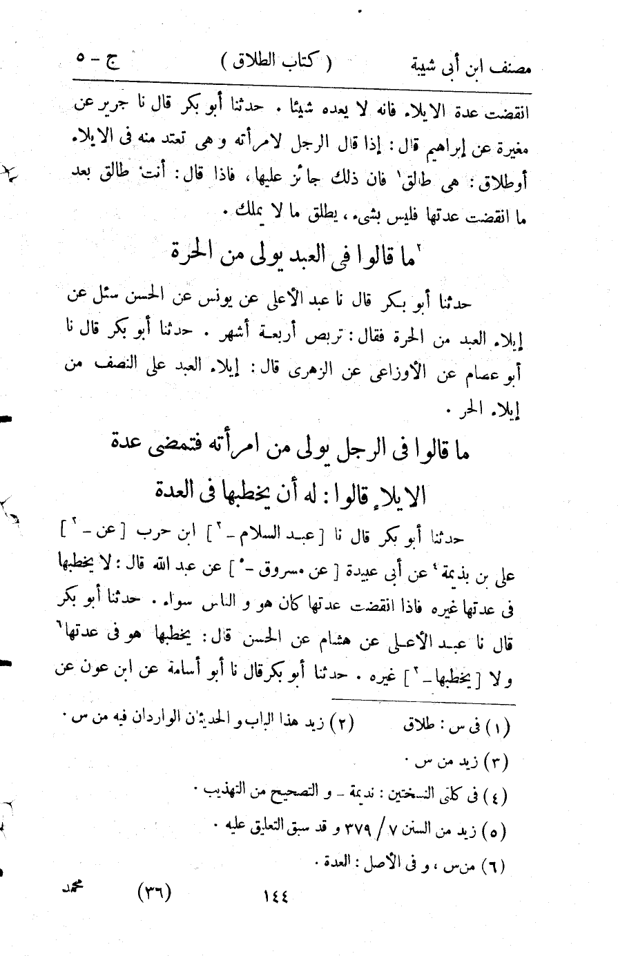 كتاب مصنف ابن أبي شيبة ط السلفية بالهند (اسم الجزء: 5)