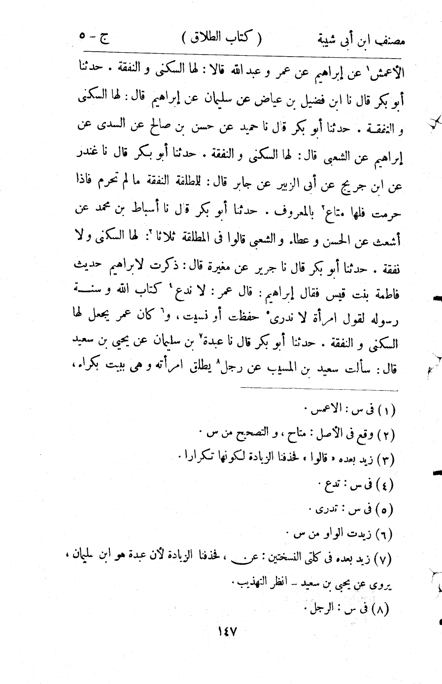 كتاب مصنف ابن أبي شيبة ط السلفية بالهند (اسم الجزء: 5)