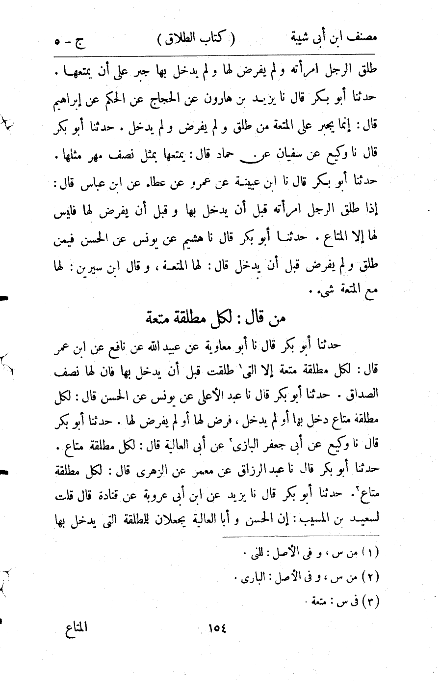 كتاب مصنف ابن أبي شيبة ط السلفية بالهند (اسم الجزء: 5)