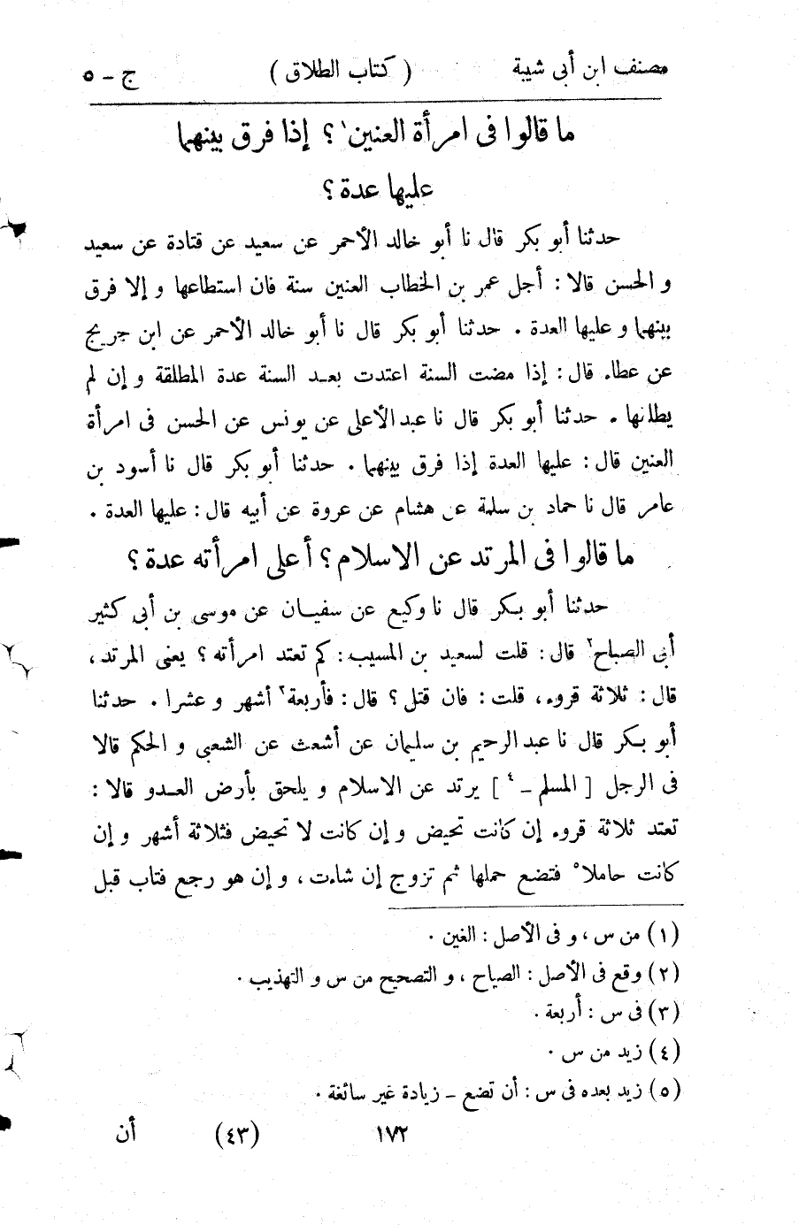 كتاب مصنف ابن أبي شيبة ط السلفية بالهند (اسم الجزء: 5)