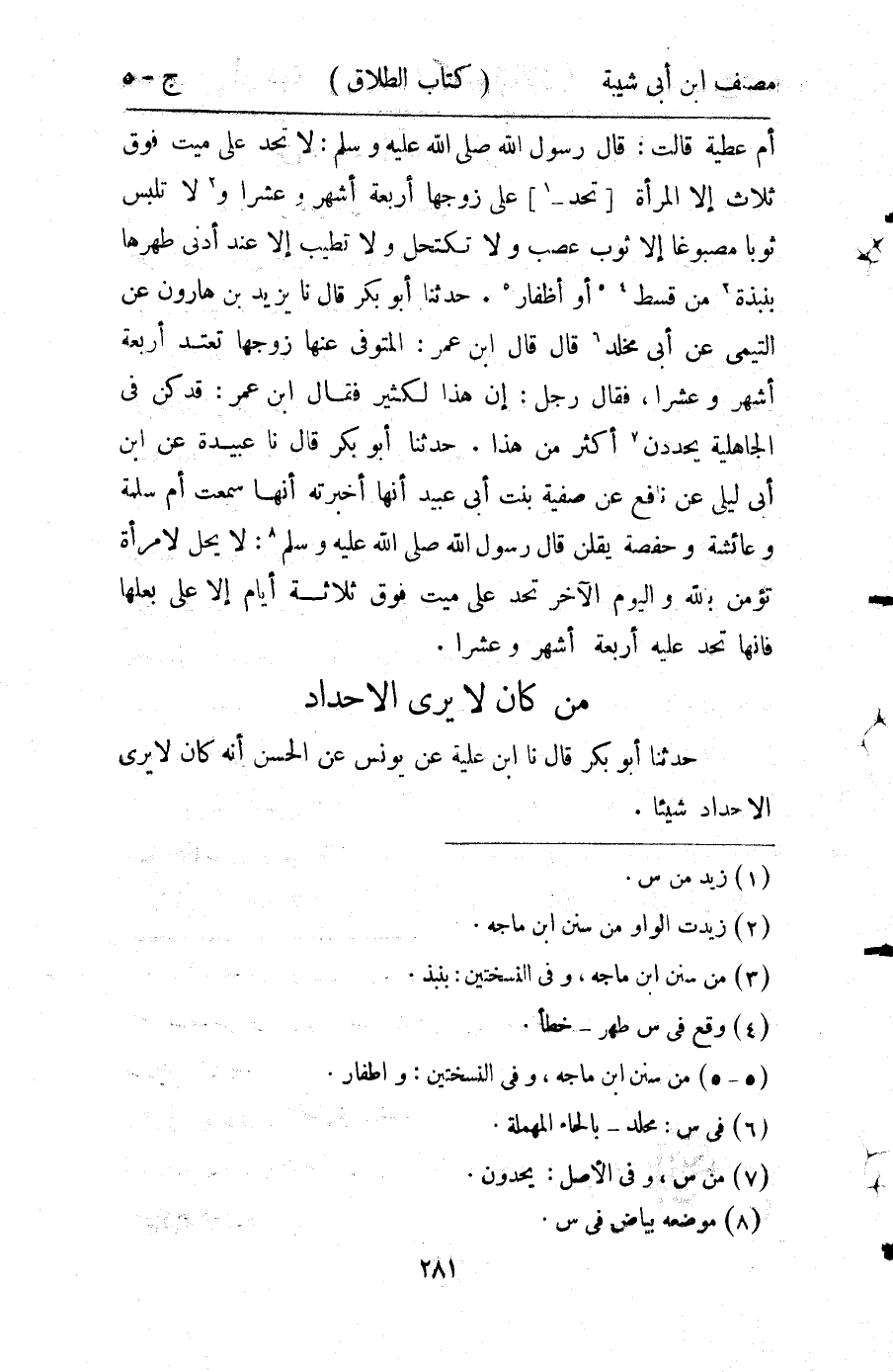 281- من كَانَ لاَ يَرَى الإِحْدَادَ.