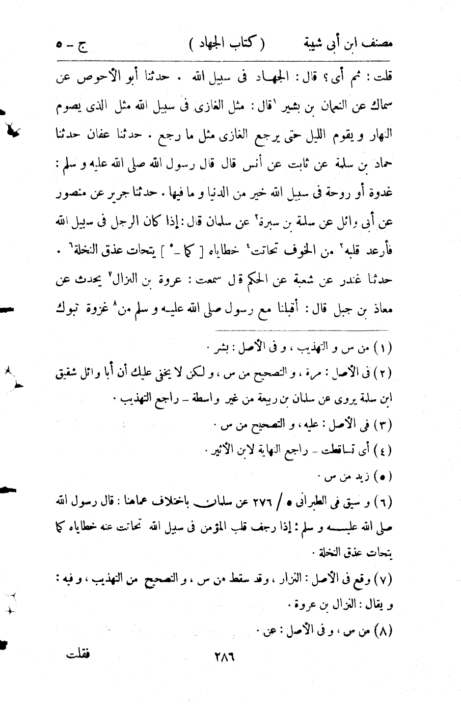 كتاب مصنف ابن أبي شيبة ط السلفية بالهند (اسم الجزء: 5)