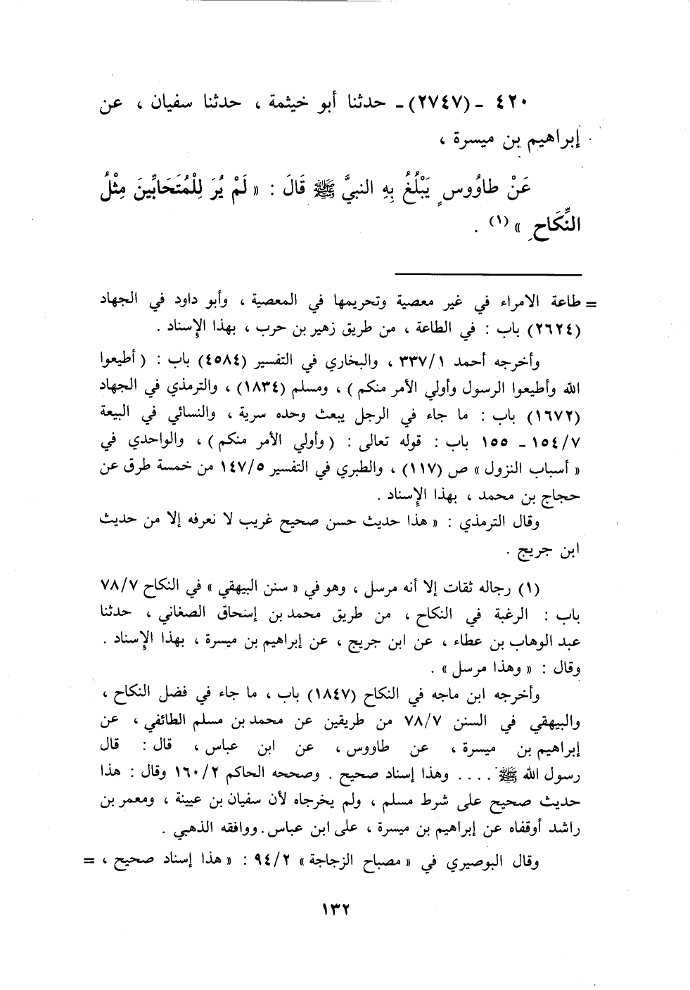 2747 - حَدَّثَنَا أَبُو خَيْثَمَةَ، حَدَّثَنَا سُفْيَانُ، عَنْ إِبْرَاهِيمَ بْنِ مَيْسَرَةَ، عَنْ طَاوُسٍ، يَبْلُغُ بِهِ النَّبِيَّ صَلَّى اللهُ عَلَيْهِ وَسَلَّمَ قَالَ: «§لَمْ يُرَ لِلْمُتَحَابِّينَ مِثْلُ النِّكَاحِ» Kرجاله ثقات إلا أنه مرسل