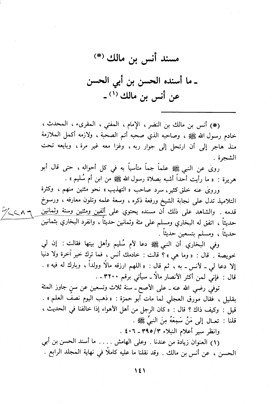 مَا أَسْنَدَهُ الْحَسَنُ بْنُ أَبِي الْحَسَنِ، عَنْ أَنَسِ بْنِ مَالِكٍ