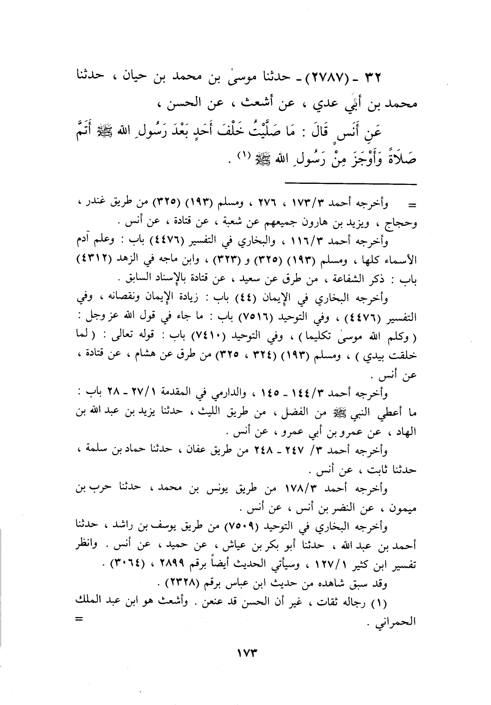 2787 - حَدَّثَنَا مُوسَى بْنُ مُحَمَّدِ بْنِ حَيَّانَ، حَدَّثَنَا مُحَمَّدُ بْنُ أَبِي عَدِيٍّ، عَنْ أَشْعَثَ، عَنِ الْحَسَنِ، عَنْ أَنَسٍ، قَالَ: «§مَا صَلَّيْتُ خَلْفَ أَحَدٍ بَعْدَ رَسُولِ اللَّهِ صَلَّى اللهُ عَلَيْهِ وَسَلَّمَ أَتَمَّ صَلَاةً وَأَوْجَزَ مِنْ رَسُولِ اللَّهِ صَلَّى اللهُ عَلَيْهِ وَسَلَّمَ» Kرجاله ثقات