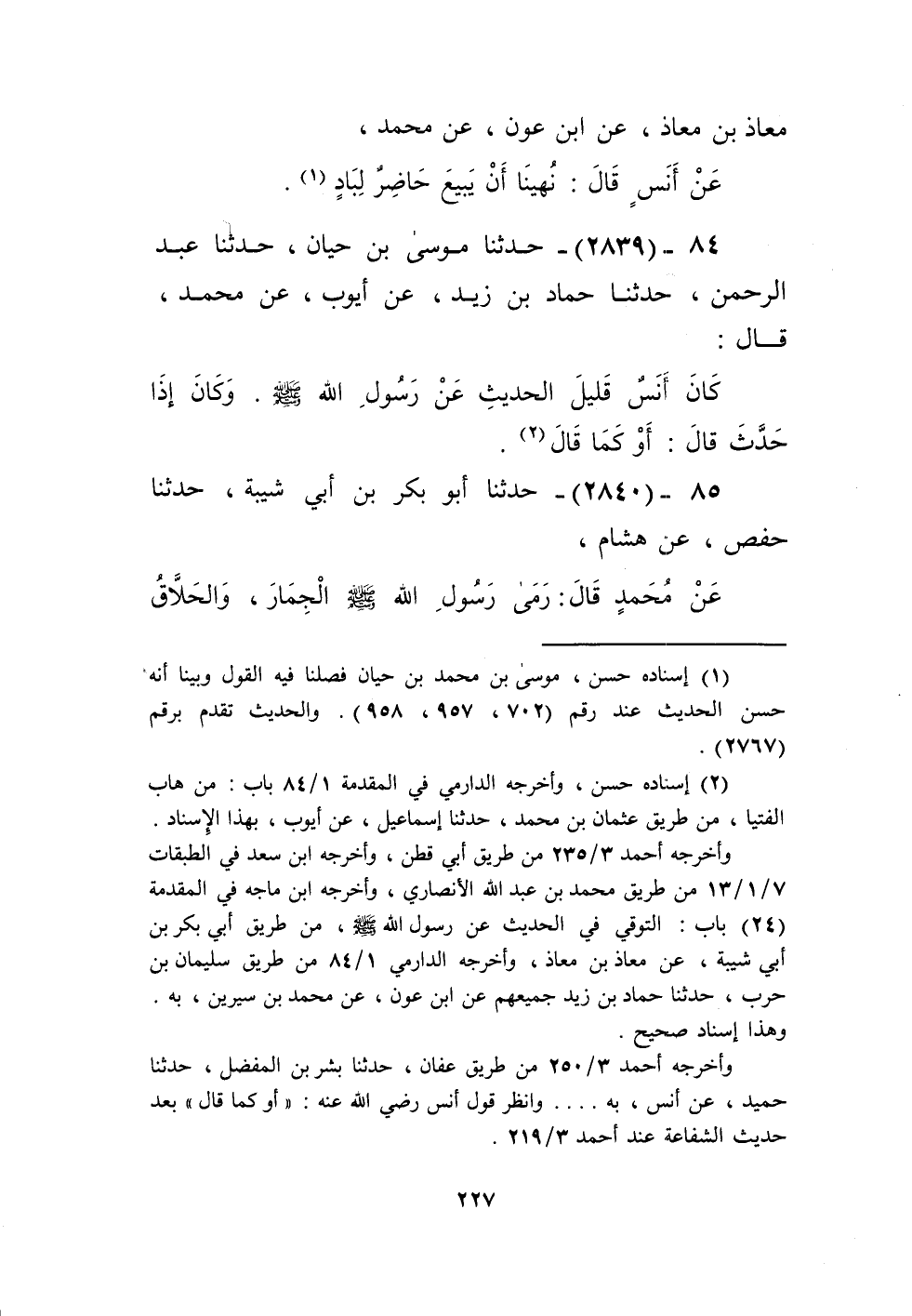 2840 - حَدَّثَنَا أَبُو بَكْرِ بْنُ أَبِي شَيْبَةَ، حَدَّثَنَا حَفْصٌ، عَنْ هِشَامٍ، عَنْ مُحَمَّدٍ، قَالَ: §رَمَى رَسُولُ اللَّهِ صَلَّى اللهُ عَلَيْهِ وَسَلَّمَ الْجِمَارَ، وَالْحَلَّاقُ جَالِسٌ فَأَمَرَ بِالْبُدْنِ فَنُحِرَتْ، وَقَالَ لِلْحَلَّاقِ: «هُنَا» وَأَشَارَ بِيَدِهِ إِلَى جَانِبِ الْأَيْمَنِ، قَالَ: فَقَسَمَ شَعْرَهُ بَيْنَ مَنْ يَلِيهِ، قَالَ: ثُمَّ أَشَارَ إِلَى الْحَلَّاقِ إِلَى جَانِبِهِ الْأَيْسَرِ فَحَلَقَهُ فَأَعْطَاهُ أُمَّ سُلَيْمٍKرجاله ثقات إلا أنه منقطع غير أن الحديث صحيح