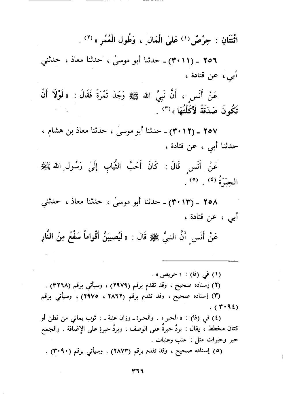 3012 - حَدَّثَنَا أَبُو مُوسَى، حَدَّثَنَا مُعَاذُ بْنُ هِشَامٍ، حَدَّثَنَا أَبِي، عَنْ قَتَادَةَ، عَنْ أَنَسٍ، قَالَ: «كَانَ §أَحَبُّ الثِّيَابِ إِلَى رَسُولِ اللَّهِ صَلَّى اللهُ عَلَيْهِ وَسَلَّمَ الْحِبَرَةَ» Kإسناده صحيح