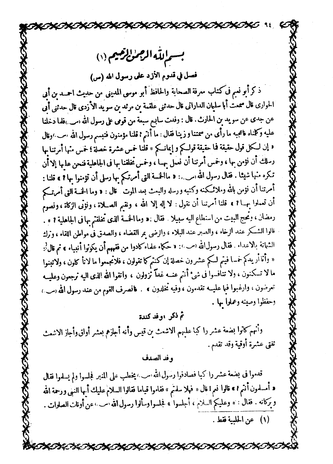 بسم الله الرحمن الرحيم [1] فصل في قدوم وفد الْأَزْدِ عَلَى رَسُولِ اللَّهِ صَلَّى اللَّهُ عَلَيْهِ وَسَلَّمَ
