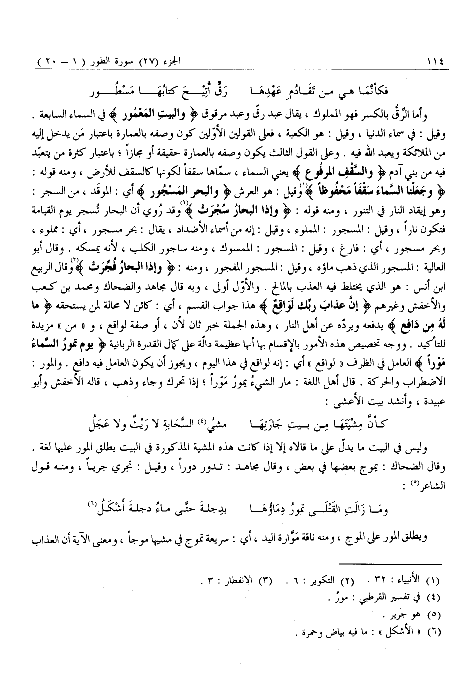 وَجَعَلْنَا السَّماءَ سَقْفاً مَحْفُوظاً «1» وَقِيلَ: هُوَ الْعَرْشُ وَالْبَحْرِ الْمَسْجُورِ أَيِ: الْمُوقَدِ، مِنَ السَّجْرِ: