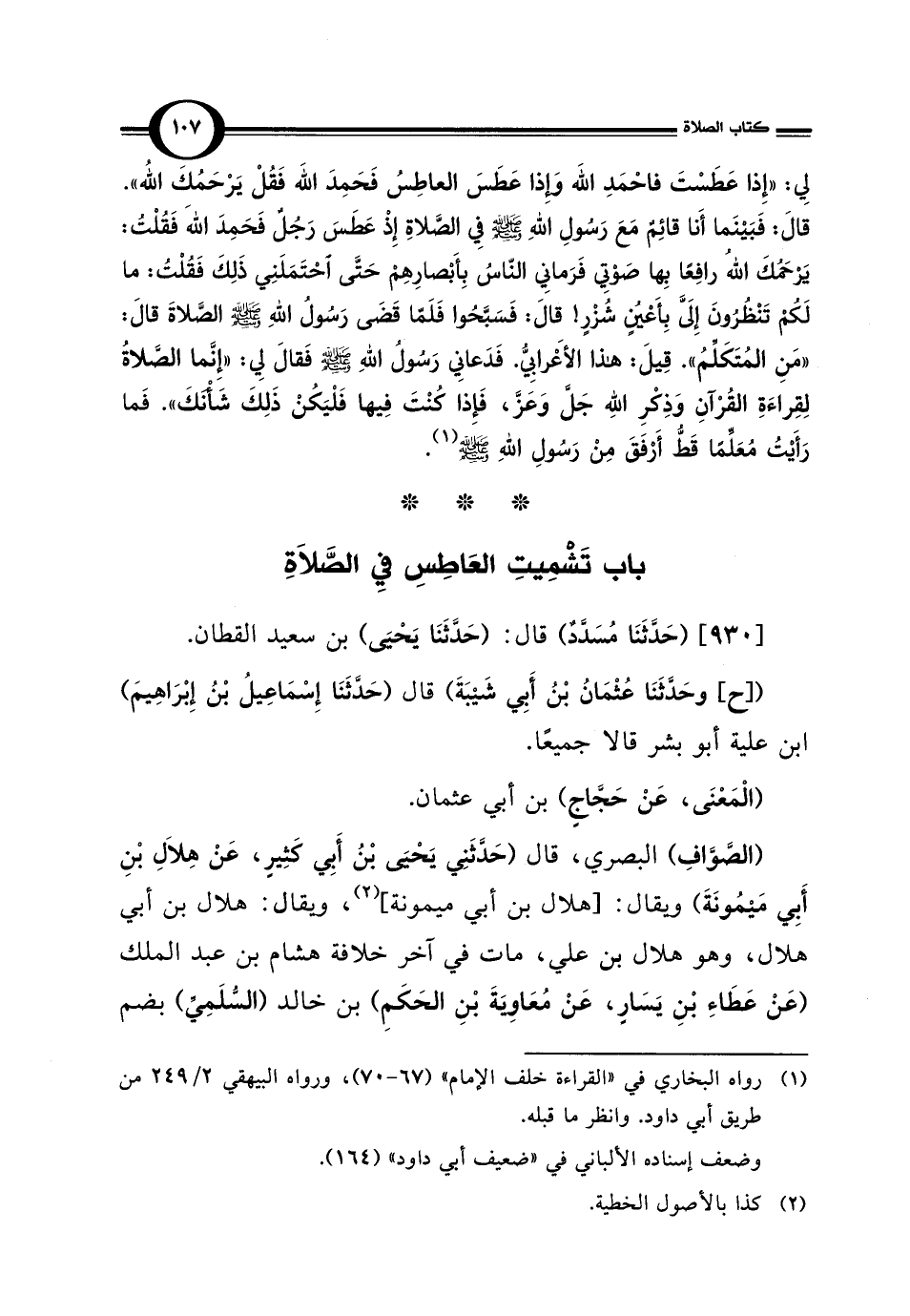 باب تَشْمِيتِ العَاطِسِ فِي الصَّلَاةِ