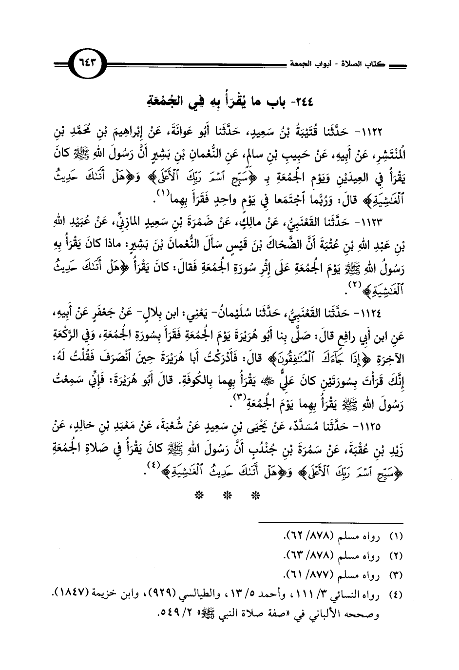 244 - باب ما يُقْرَأُ بِهِ فِي الجُمُعَةِ