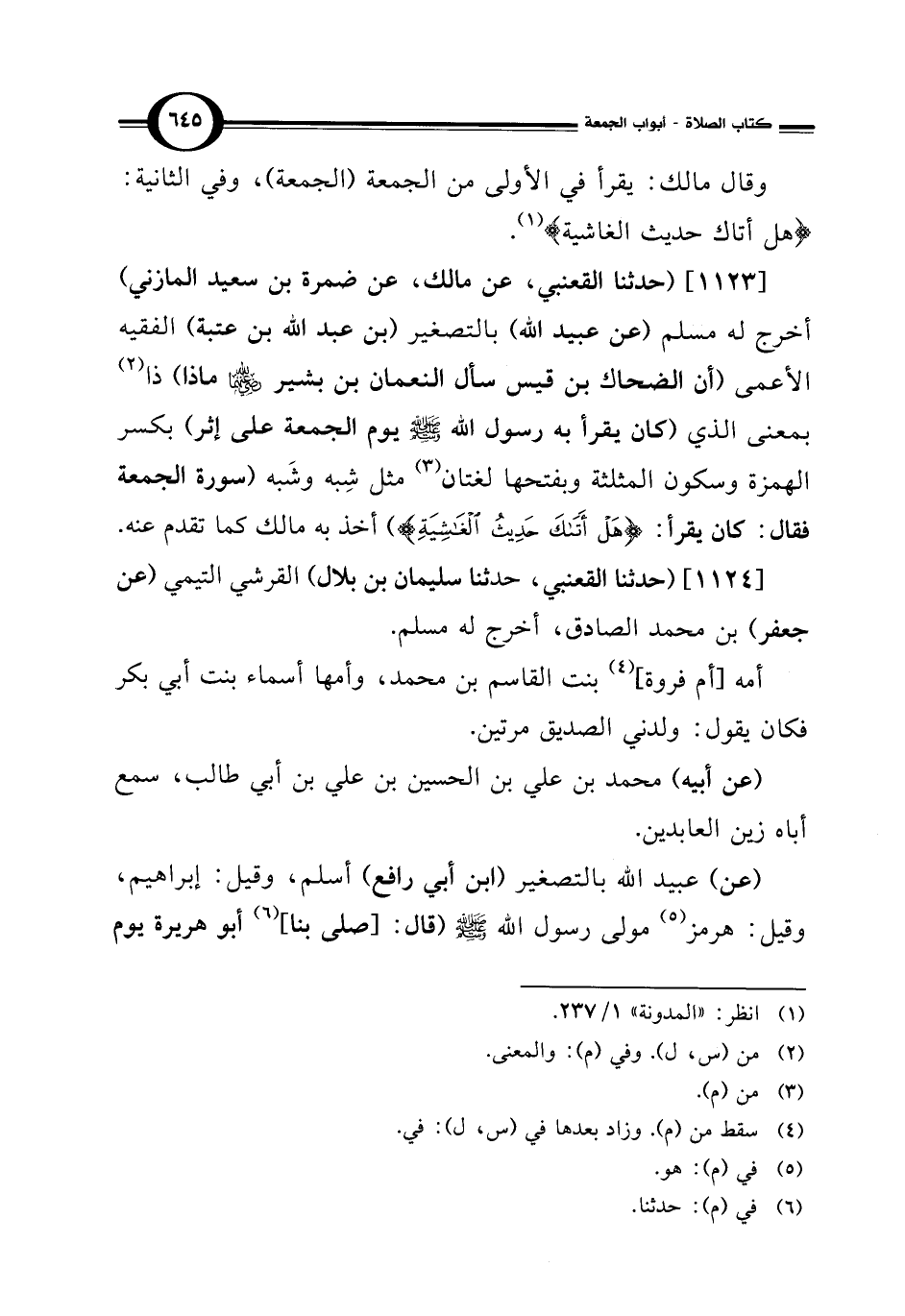 [1124] (حدثنا القعنبي، حدثنا سليمان بن بلال) القرشي التيمي (عن جعفر) بن محمد الصادق، أخرج له مسلم.