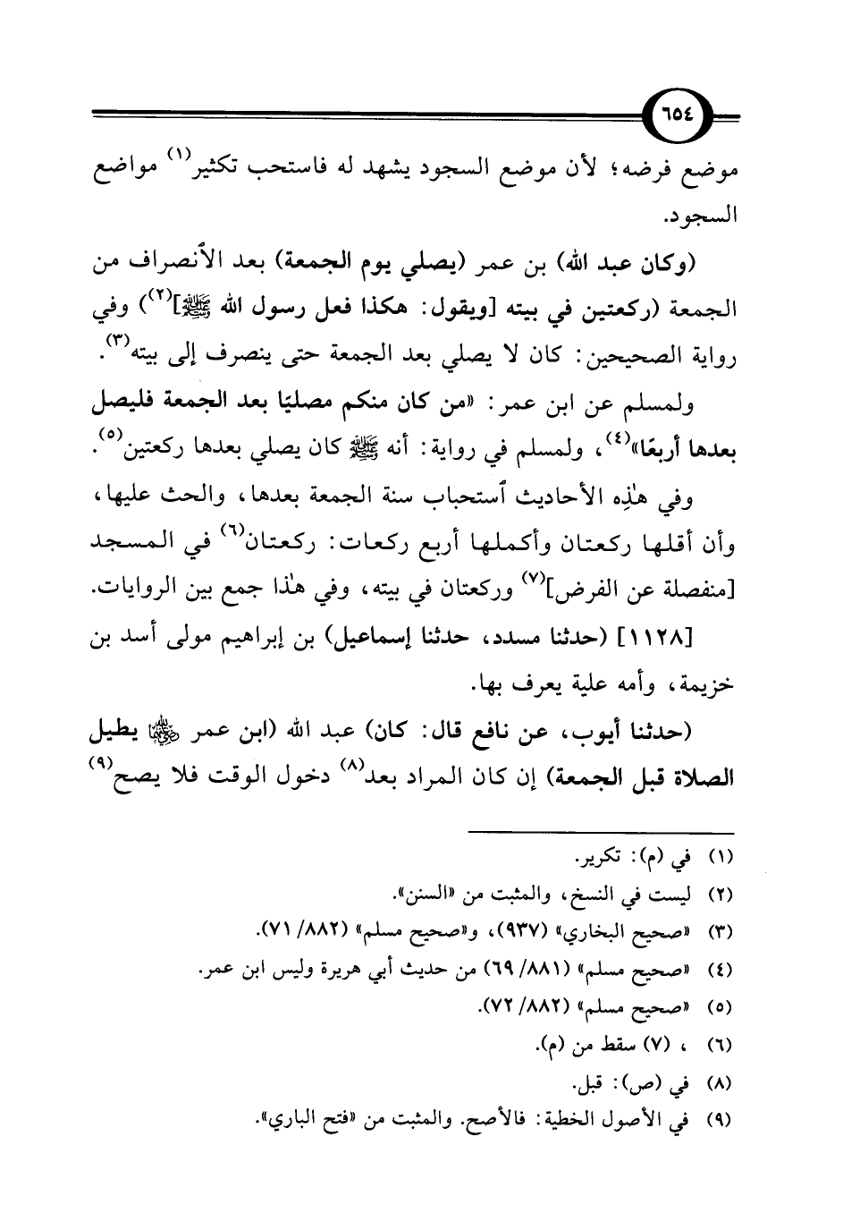 (¬4) "صحيح مسلم" (881/ 69) من حديث أبي هريرة وليس ابن عمر.