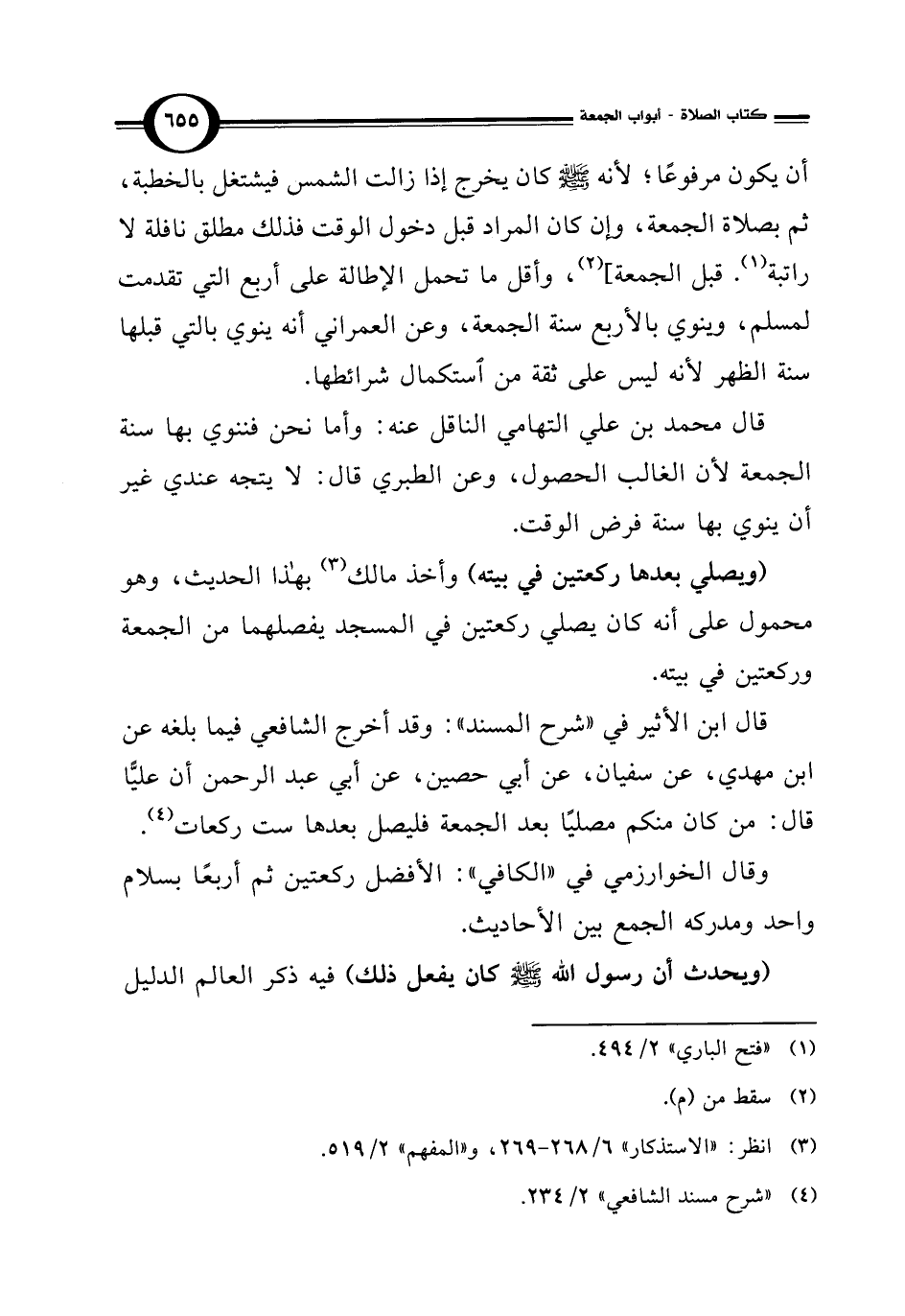قال ابن الأثير في "شرح المسند": وقد أخرج الشافعي فيما بلغه عن ابن مهدي، عن سفيان، عن أبي حصين، عن أبي عبد الرحمن أن عليًّا قال: من كان منكم مصليًا بعد الجمعة فليصل بعدها ست ركعات (¬4).
