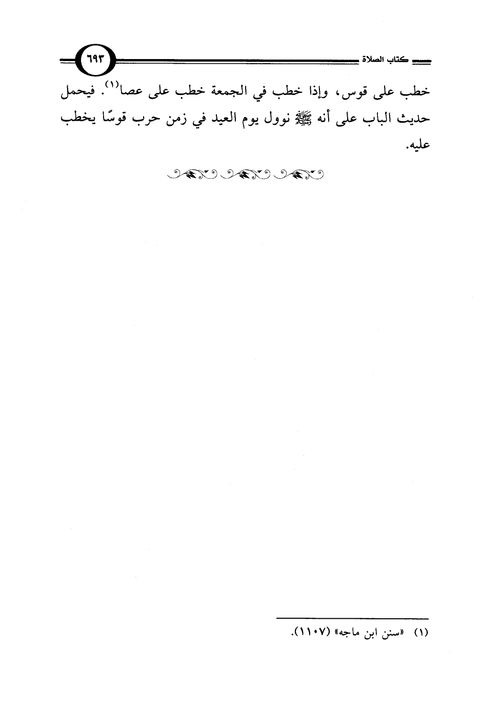 خطب على قوس، وإذا خطب في الجمعة خطب على عصا (¬1). فيحمل حديث الباب على أنه - صلى الله عليه وسلم - نوول يوم العيد في زمن حرب قوسًا يخطب عليه.