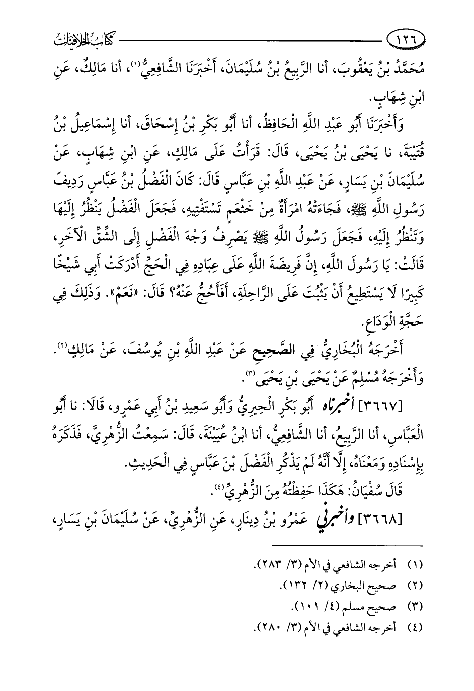 [3667] أخبرناه أَبُو بَكْرٍ الْحِيرِيُّ وَأَبُو سَعِيدِ بْنُ أَبِي عَمْرٍو، قَالَا: نا أَبُو الْعَبَّاسِ، أنا الرَّبِيعُ، أنا الشَّافِعِيُّ، أنا ابْنُ عُيَيْنَةَ، قَالَ: سَمِعْتُ الزُّهْرِيَّ، فَذَكَرَهُ بِإِسْنَادِهِ وَمَعْنَاهُ، إِلَّا أَنَّهُ لَمْ يَذْكُرِ الْفَضْلَ بْنَ عَبَّاسٍ فِي الْحَدِيثِ.