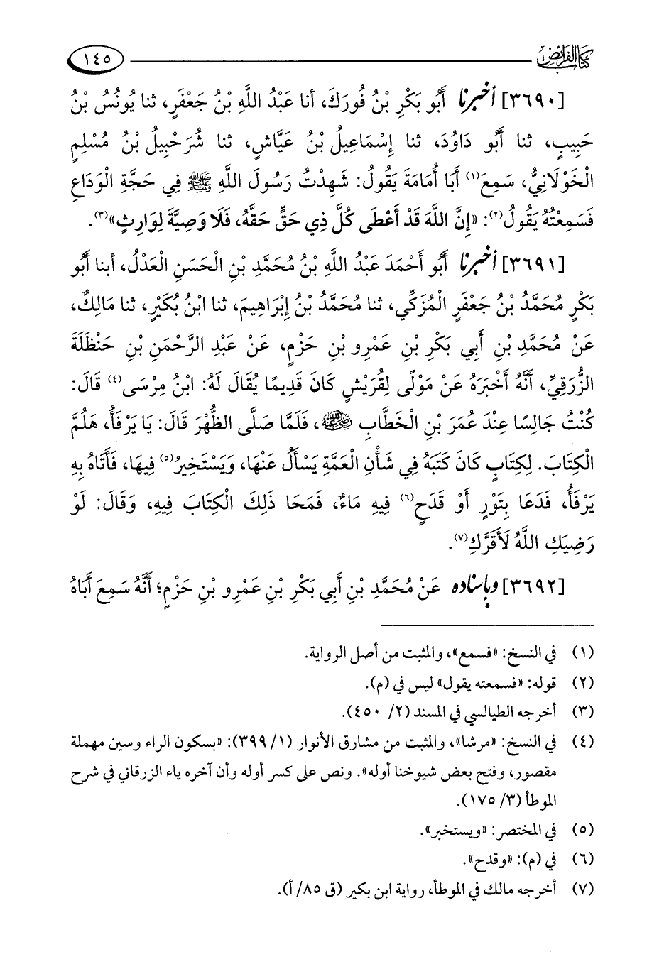(¬7) أخرجه مالك في الموطأ، رواية ابن بكير (ق 85/ أ).