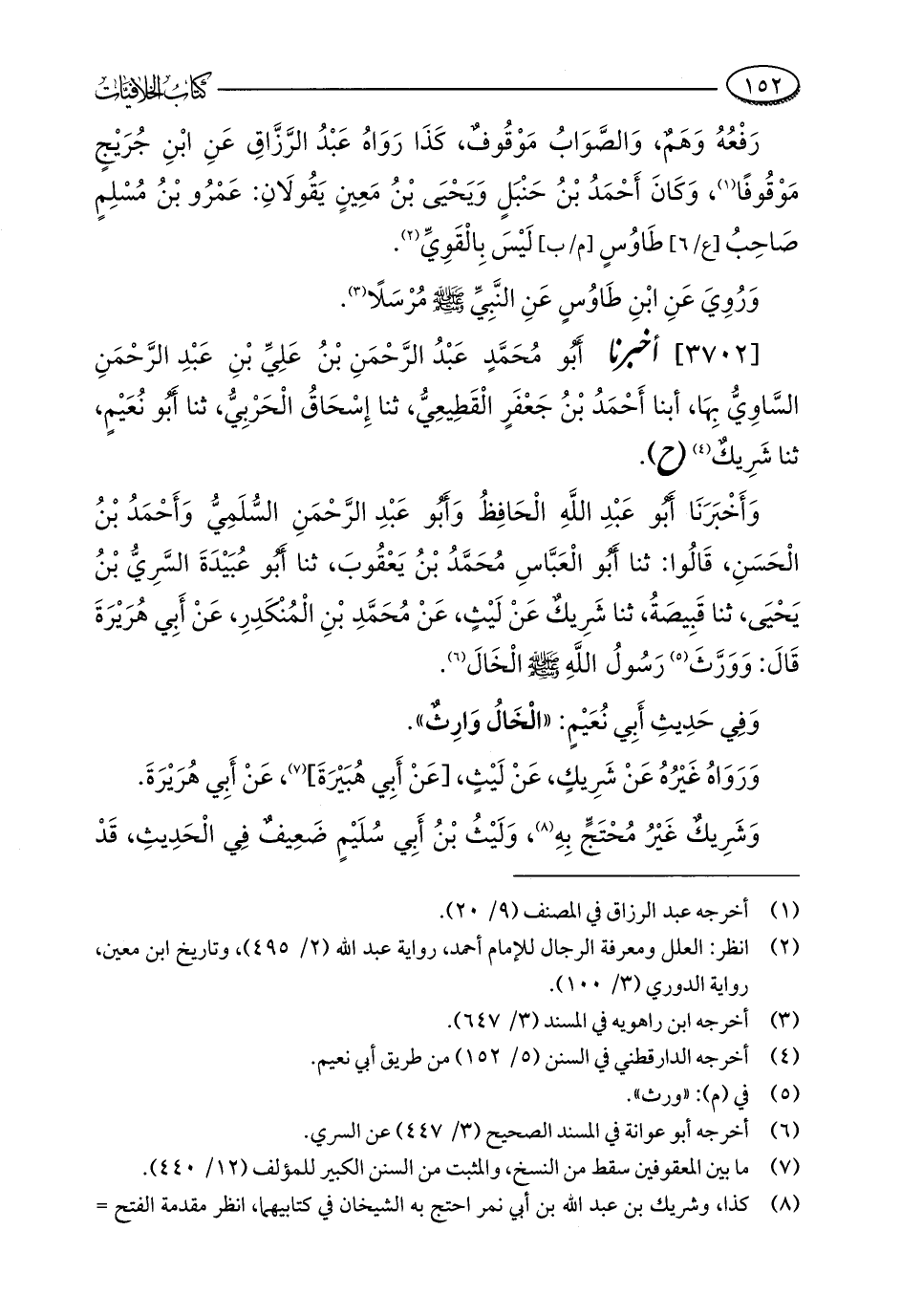 [3702] أخبرنا أَبُو مُحَمَّدٍ عَبْدُ الرَّحْمَنِ بْنُ عَلِيِّ بْنِ عَبْدِ الرَّحْمَنِ السَّاوِيُّ بِهَا، أبنا أَحْمَدُ بْنُ جَعْفَرٍ الْقَطِيعِيُّ، ثنا إِسْحَاقُ الْحَرْبِيُّ، ثنا أَبُو نُعَيْمٍ، ثنا شَرِيكٌ (¬4) (ح).