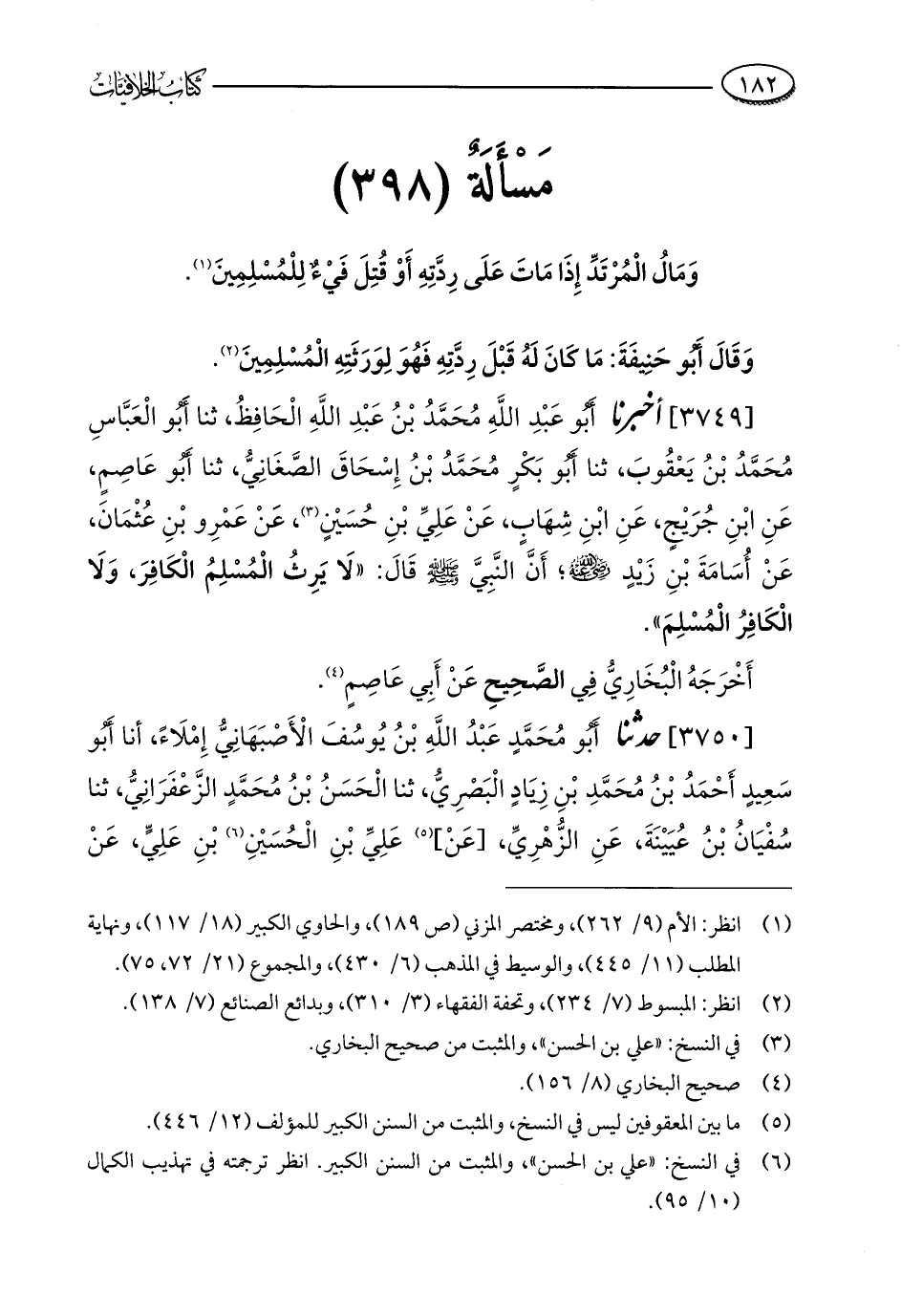 كتاب الخلافيات بين الإمامين الشافعي وأبي حنيفة وأصحابه ت النحال (اسم الجزء: 5)