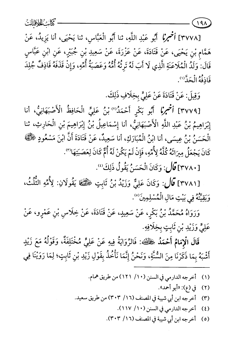 [3779] أخبرنا أبو بَكْرٍ أَحْمَدُ (¬2) بْنُ عَلِيٍّ الْحَافِظُ الْأَصْبَهَانِيُّ، أنا إِبْرَاهِيمُ بْنُ عَبْدِ اللَّهِ الْأَصْبَهَانِيُّ، أنا إِسْمَاعِيلُ بْنُ إِبْرَاهِيمَ بْنِ الْحَارِثِ، ثنا الْحَسَنُ بْنُ عِيسَى، أنا ابْنُ الْمُبَارَكِ، أنا سَعِيدٌ، عَنْ قَتَادَةَ أَنَّ ابْنَ مَسْعُودٍ - رضي الله عنه - كَانَ يَجْعَلُ مِيرَاثَهُ كُلَّهُ لِأُمِّهِ، فَإنْ لَمْ يَكُنْ لَهُ أُمٌّ كَانَ لِعَصَبَتِهَا (¬3).