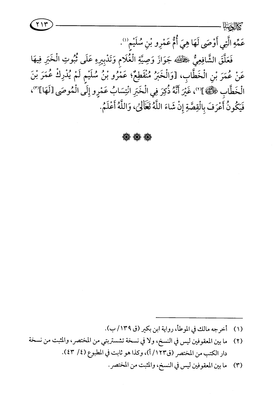 فَعَلَّقَ الشَّافِعِيُّ - رحمه الله - جَوَازَ وَصِيَّةِ الْغُلَامِ وَتَدْبِيرِهِ عَلَى ثُبُوتِ الْخَبَرِ فِيهَا عَنْ عُمَرَ بْنِ الْخَطَّابِ، [وَالْخَبَرُ مُنْقَطِعٌ؛ عَمْرُو بْنُ سلَيْمٍ لَمْ يُدْرِكْ عُمَرَ بْنَ الْخَطَّابِ - رضي الله عنه -] (¬2)، غَيْرَ أَنَّهُ ذُكِرَ فِي الْخَبَرِ انْتِسَابُ عَمْرٍو إِلَى الْمُوصَى [لَهَا] (¬3)، فَيَكُونُ أَعْرَفَ بِالْقِصَّةِ إِنْ شَاءَ اللَّهُ تَعَالى، وَاللَّهُ أَعْلَمُ.