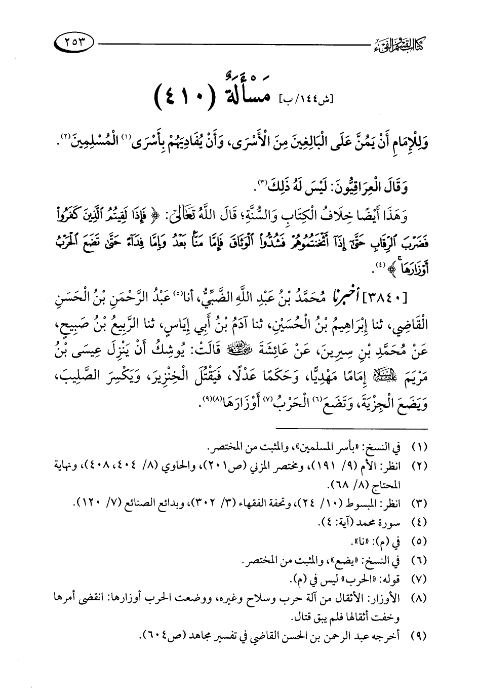 (¬1) في النسخ: "بأسر المسلمين"، والمثبت من المختصر.