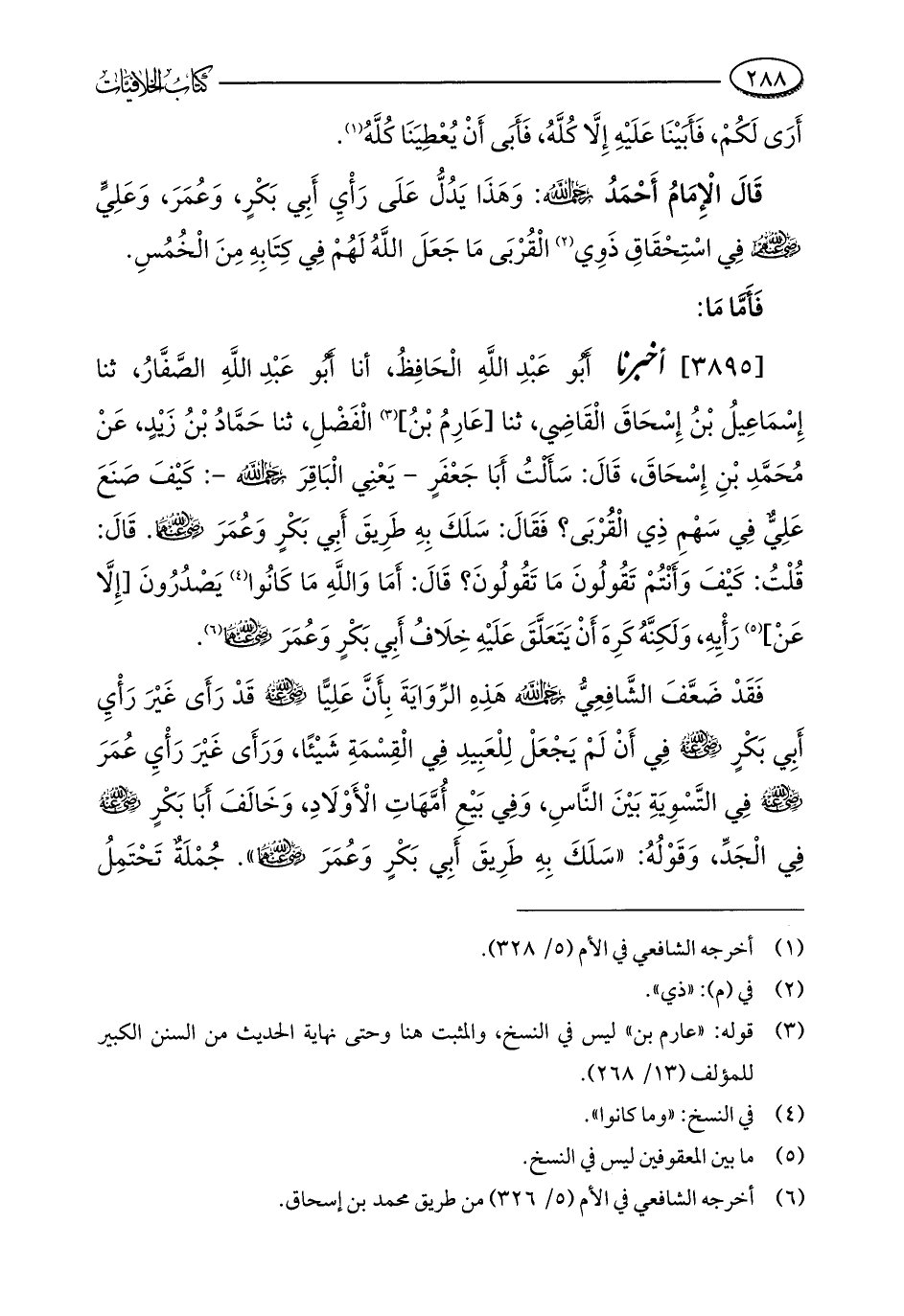 [3895] أخبرنا أَبُو عَبْدِ اللَّهِ الْحَافِظُ، أنا أَبُو عَبْدِ اللَّهِ الصَّفَّارُ، ثنا إِسْمَاعِيلُ بْنُ إِسْحَاقَ الْقَاضِي، ثنا [عَارِمُ بْنُ] (¬3) الْفَضْلِ، ثنا حَمَّادُ بْنُ زَيْدٍ، عَنْ مُحَمَّدِ بْنِ إِسْحَاقَ، قَالَ: سَأَلْتُ أَبَا جَعْفَرٍ - يَعْنِي الْبَاقِرَ - رحمه الله -: كَيْفَ صَنَعَ عَلِيٌّ فِي سَهْمِ ذِي الْقُرْبَى؟ فَقَالَ: سَلَكَ بِهِ طَرِيقَ أَبِي بَكْرٍ وَعُمَرَ - رضي الله عنهما -. قَالَ: قُلْتُ: كَيْفَ وَأَنْتُمْ تَقُولُونَ مَا تَقُولُونَ؟ قَالَ: أَمَا وَاللَّهِ مَا كَانُوا (¬4) يَصْدُرُونَ [إِلَّا عَنْ] (¬5) رَأْيِهِ، وَلَكِنَّهُ كَرِهَ أَنْ يَتَعَلَّقَ عَلَيْهِ خِلَافُ أَبِي بَكْرٍ وَعُمَرَ - رضي الله عنهما - (¬6).