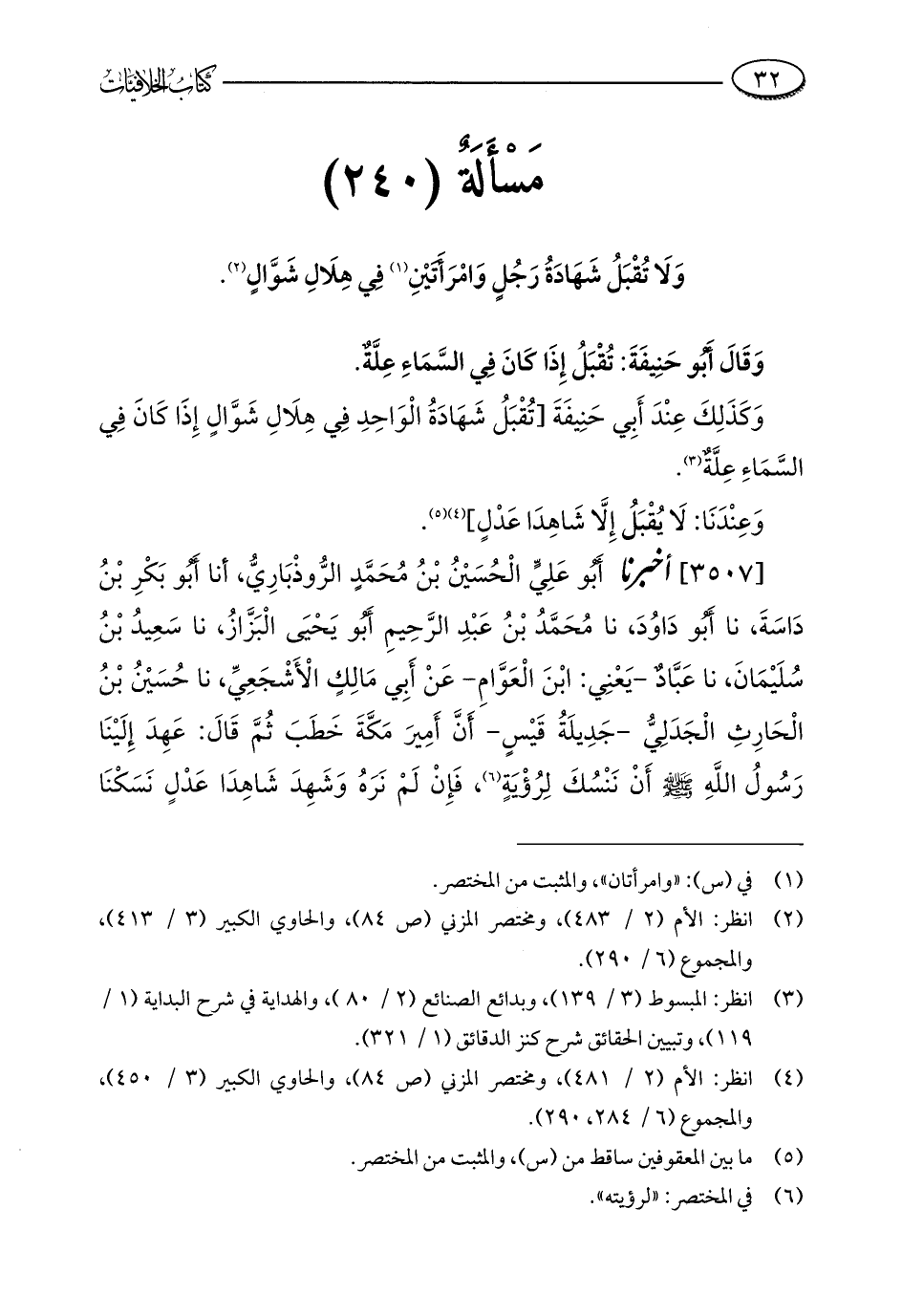 (¬3) انظر: المبسوط (3/ 139)، وبدائع الصنائع (2/ 80)، والهداية في شرح البداية (1/ 119)، وتبيين الحقائق شرح كنز الدقائق (1/ 321).