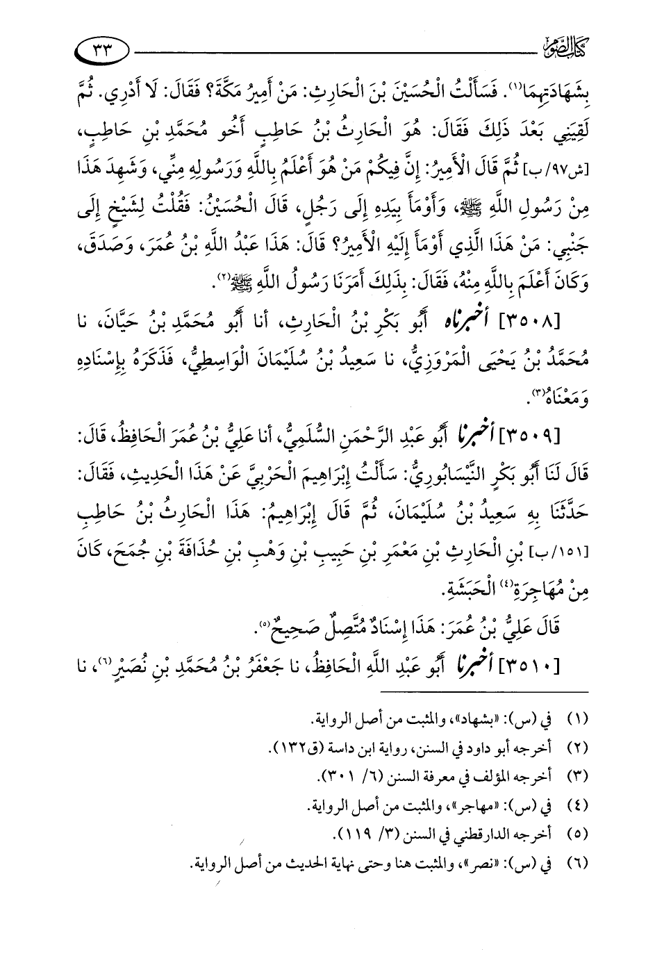 [3509] أخبرنا أَبُو عَبْدِ الرَّحْمَنِ السُّلَمِيُّ، أنا عَلِيُّ بْنُ عُمَرَ الْحَافِظُ، قَالَ: قَالَ لَنَا أَبُو بَكْرٍ النَّيْسَابُورِيُّ: سَأَلْتُ إِبْرَاهِيمَ الْحَرْبِيَّ عَنْ هَذَا الْحَدِيثِ، فَقَالَ: حَدَّثَنَا بِهِ سَعِيدُ بْنُ سُلَيْمَانَ، ثُمَّ قَالَ إِبْرَاهِيمُ: هَذَا الْحَارِثُ بْنُ حَاطِبِ بْنِ الْحَارِثِ بْنِ مَعْمَرِ بْنِ حَبِيبِ بْنِ وَهْبِ بْنِ حُذَافَةَ بْنِ جُمَحَ، كَانَ مِنْ مُهَاجِرَةِ (¬4) الْحَبَشَةِ.