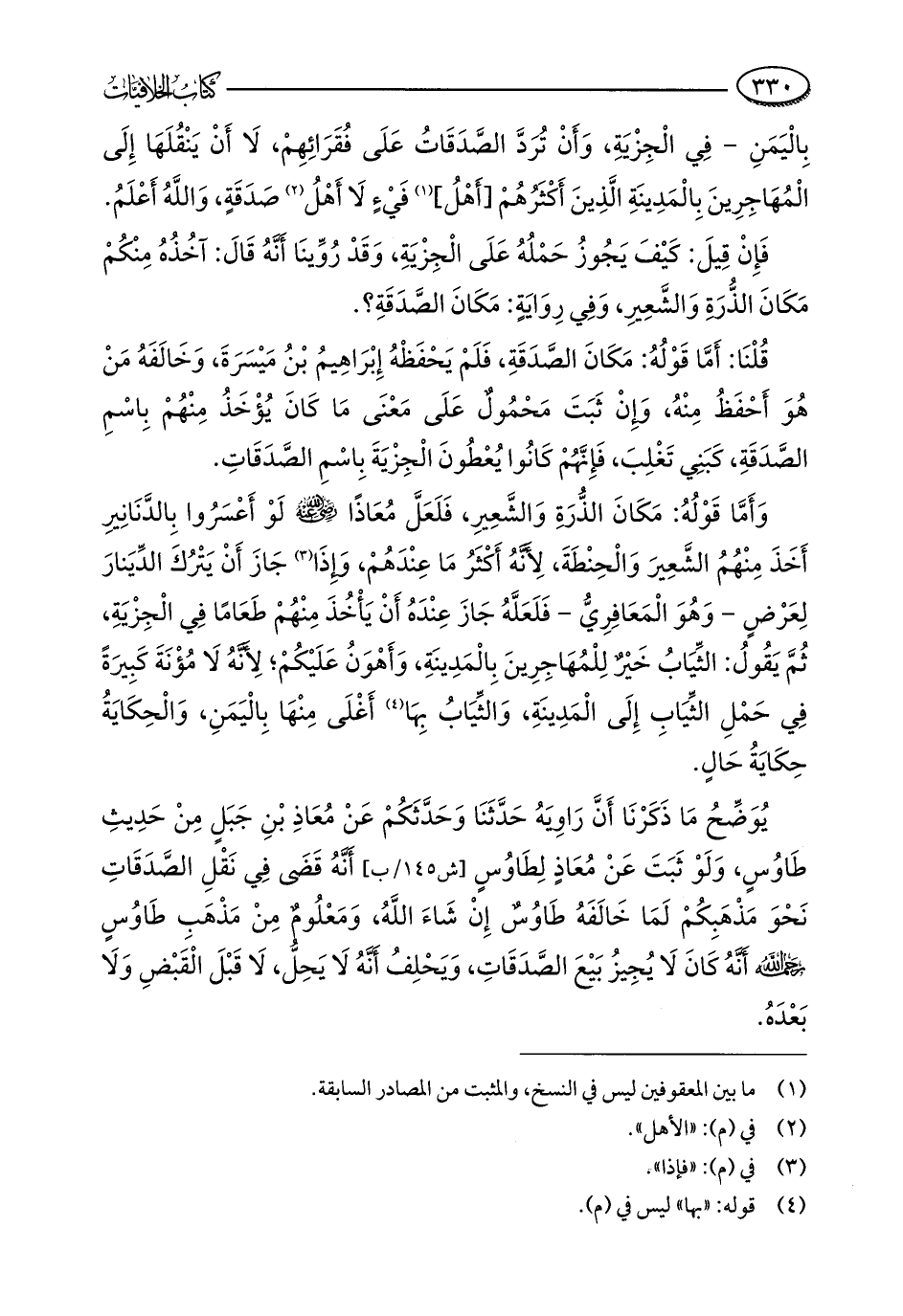 بِالْيَمَنِ - فِي الْجِزْيَةِ، وَأَنْ تُرَدَّ الصَّدَقَاتُ عَلَى فُقَرَائِهِمْ، لَا أَنْ يَنْقُلَهَا إِلَى الْمُهَاجِرِينَ بِالْمَدِينَةِ الَّذِينَ أَكْثَرُهُمْ [أَهْلُ] (¬1) فَيْءٍ لَا أَهْلُ (¬2) صَدَقَةٍ، وَاللَّهُ أَعْلَمُ.