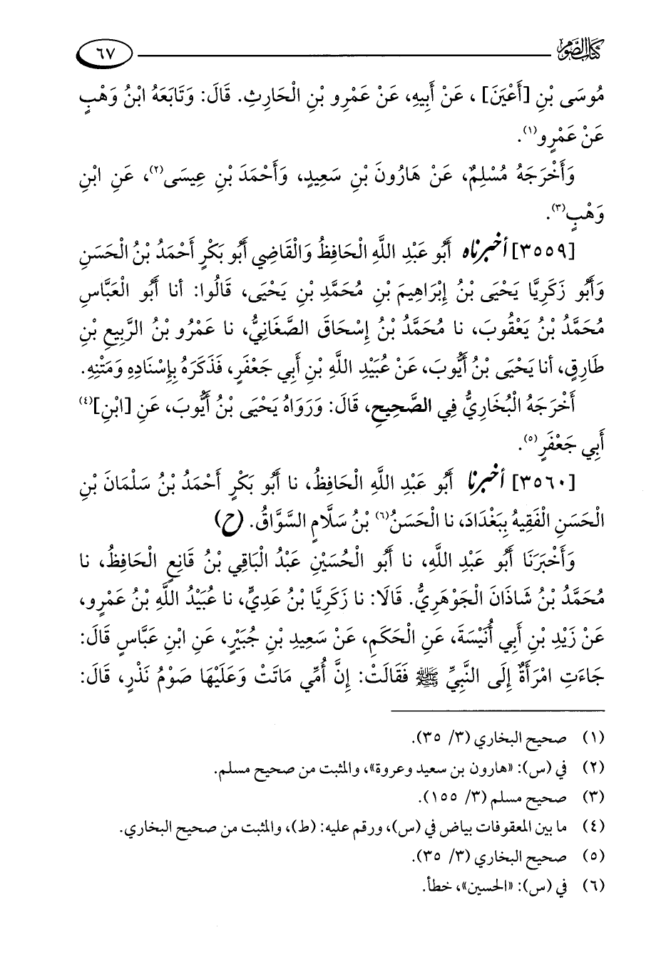 مُوسَى بْنِ [أَعْيَنَ]، عَنْ أَبِيهِ، عَنْ عَمْرِو بْنِ الْحَارِثِ. قَالَ: وَتَابَعَهُ ابْنُ وَهْبٍ عَنْ عَمْرٍو (¬1).