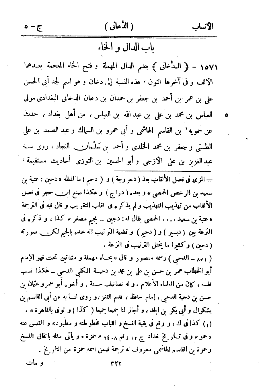 [1] كذا في ك، ووقع في بقية النسخ واللباب مخطوطته ومطبوعته والقبس عنه «حمو» وفي تاريخ بغداد ج 12 رقم 6408 «حمزة» ويأتى مثله باتفاق النسخ وحمزة بن القاسم الهاشمي معروف له ترجمة فيمن اسمه حمزة من التاريخ.