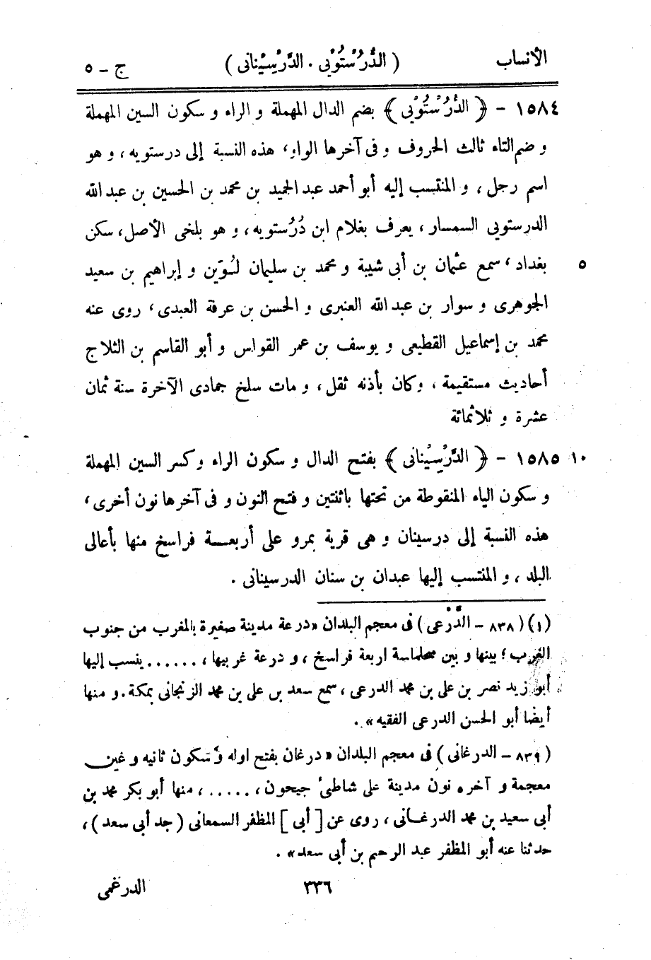 (839- الدرغانى) في معجم البلدان «درغان بفتح اوله وسكون ثانيه وغين معجمة وآخره نون مدينة على شاطئ جيحون،....، منها أبو بكر محمد بن أبى سعيد بن محمد الدرغانى، روى عن [أبى] المظفر السمعاني (جد أبى سعد) ، حدثنا عنه أبو المظفر عبد الرحيم بن أبى سعد» .