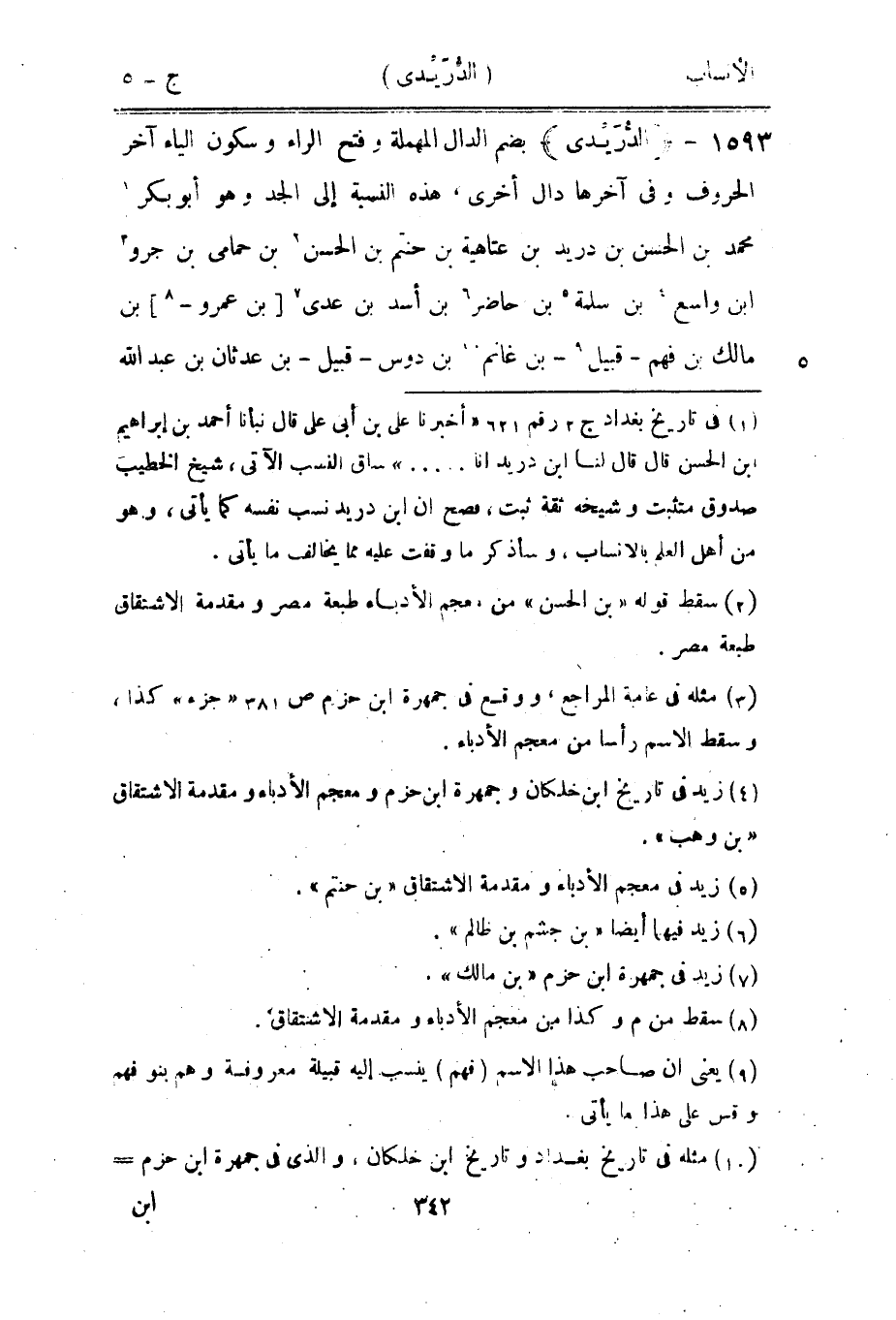 [1] في تاريخ بغداد ج 2 رقم 621 «أخبرنا على بن أبى على قال نبأنا أحمد بن إبراهيم ابن الحسن قال قال لنا ابن دريد انا ... » ساق النسب الآتي، شيخ الخطيب صدوق متثبت وشيخه ثقة ثبت، فصح ان ابن دريد نسب نفسه كما يأتى، وهو من أهل العلم بالأنساب، وسأذكر ما وقفت عليه مما يخالف ما يأتى.