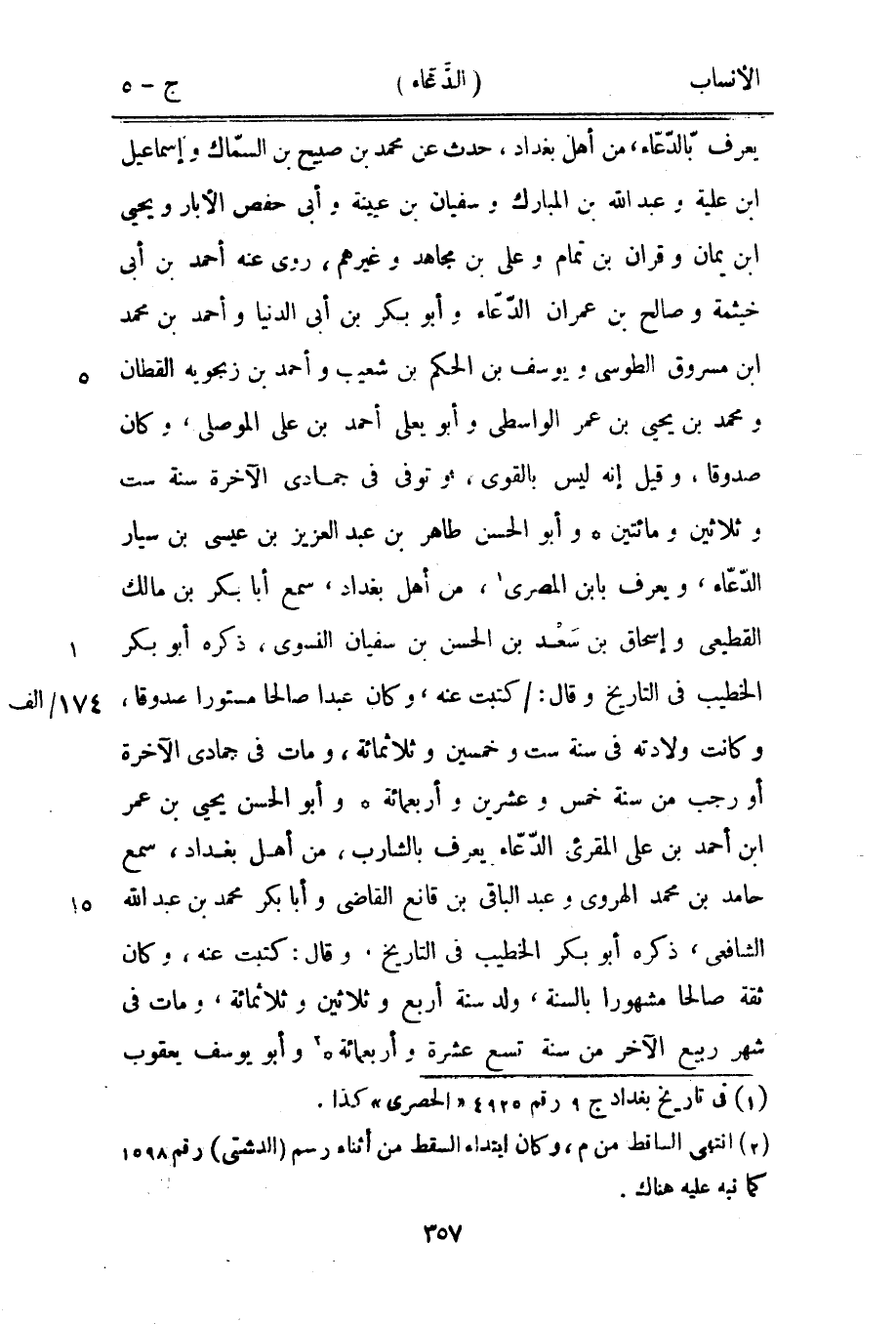 [1] في تاريخ بغداد ج 9 رقم 4925 «الحصرى» كذا.