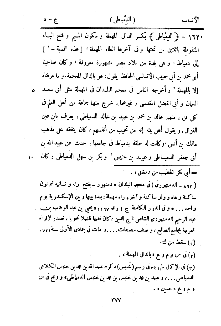 (862- الدمنهوري) في معجم البلدان «دمنهور- بفتح اوله وثانيه ثم نون ساكنة وهاء وواو ساكنة وآخره راء مهملة: بلدة بينها وبين الإسكندرية يوم واحد ... » وفي الدرر الكامنة ج 4 رقم 1167 «يحيى بن عبد الوهاب بن عبد الرحيم الدمنهوري الشافعيّ تاج الدين، كان فقيها فاضلا نحويا، تصدر لإقراء العربية بجامع الصالح، وصنف مصنفات ... ومات في جمادى الأولى سنة 721.