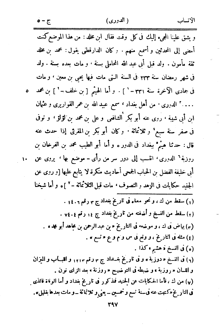 [6] في النسخ «دوزية» وفي تاريخ بغداد ج 3 رقم 1213 واللباب والميزان واللسان «روزبه» وضبطه في التوضيح «روزنة» بعد الزاى نون.