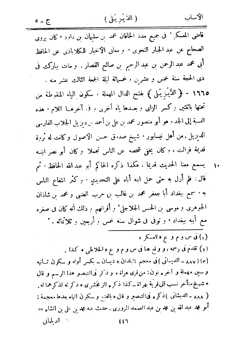 [3] (887- الديسانى) في معجم البلدان «ديسان- بكسر أوله وسكون ثانيه وسين مهملة وآخره نون: من قرى هراة» وذكر في التبصير هذا الرسم وقال «شيخ متأخر نسب الى قرية بهراة- كذا ذكره الزمخشريّ» ذكرته لذكرهما له.