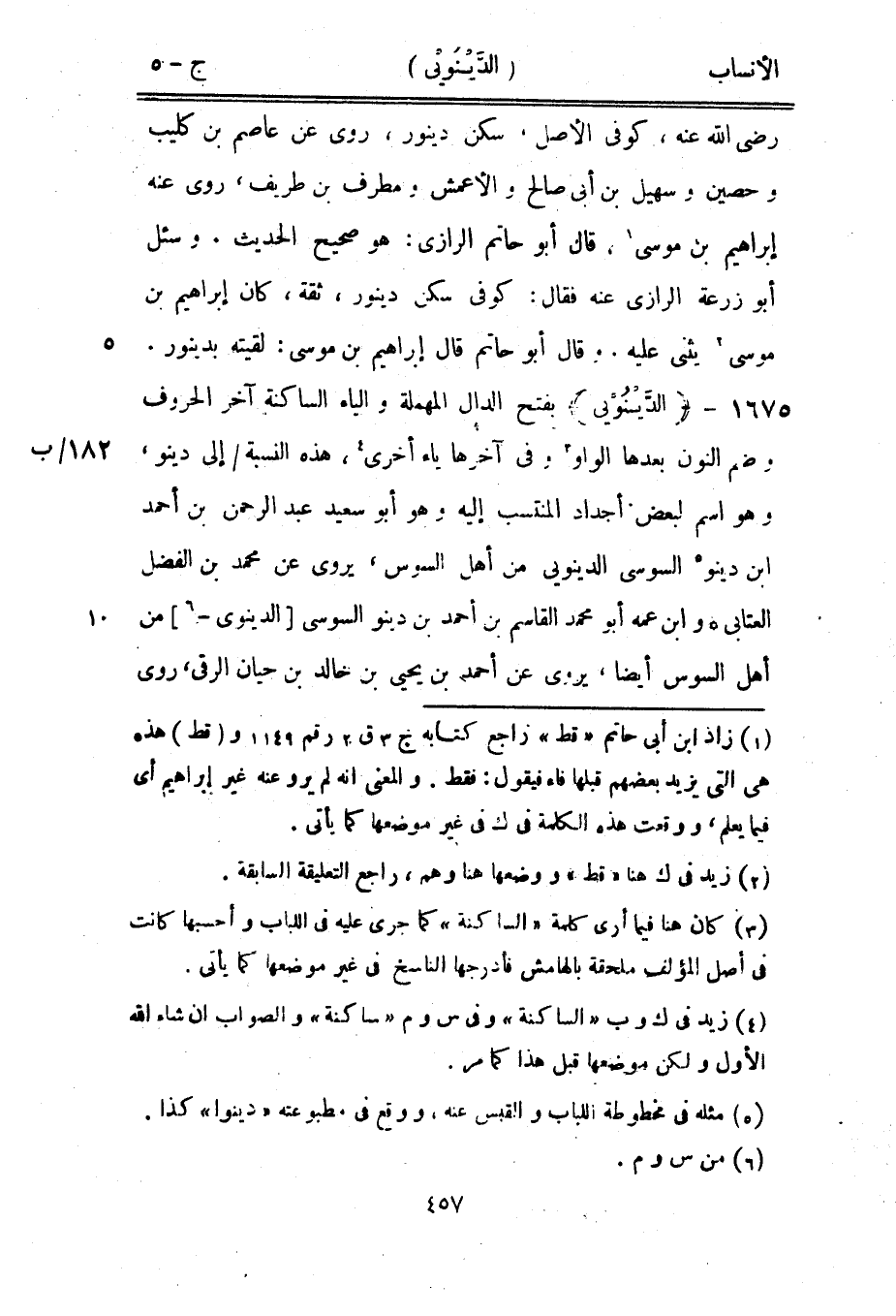 [5] مثله في مخطوطة اللباب والقبس عنه، ووقع في مطبوعته «دينوا» كذا.