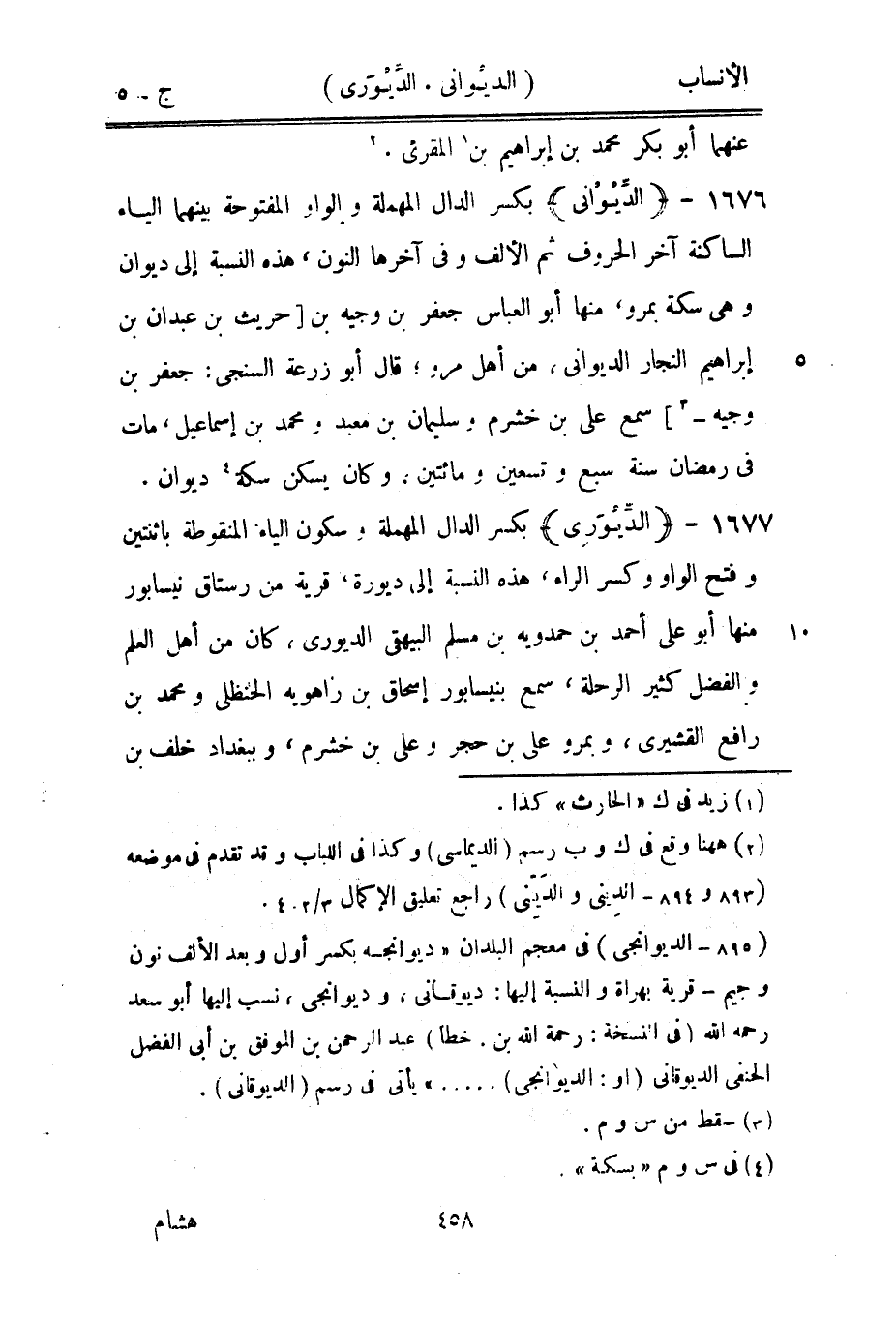 [2] هاهنا وقع في ك وب رسم (الديماسى) وكذا في اللباب وقد تقدم في موضعه (893 و 894- الديني والديّنى) راجع تعليق الإكمال 3/ 402.