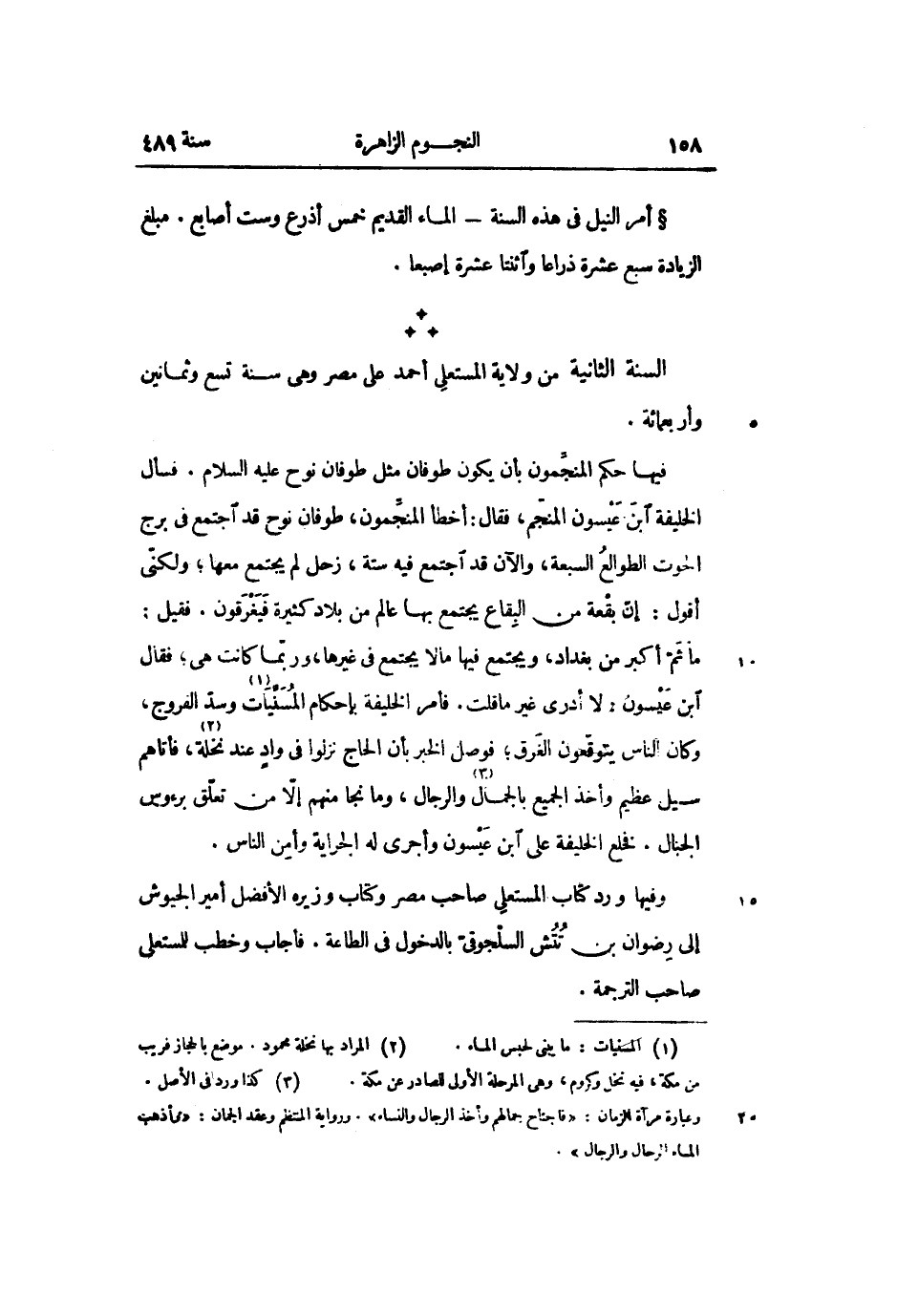 السنة الثانية من ولاية المستعلى أحمد على مصر وهى سنة تسع وثمانين وأربعمائة.