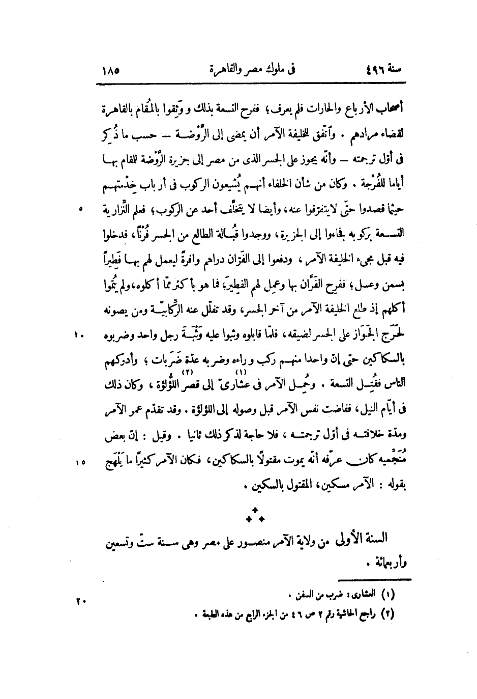 السنة الأولى من ولاية الآمر منصور على مصر وهى سنة ستّ وتسعين وأربعمائة.