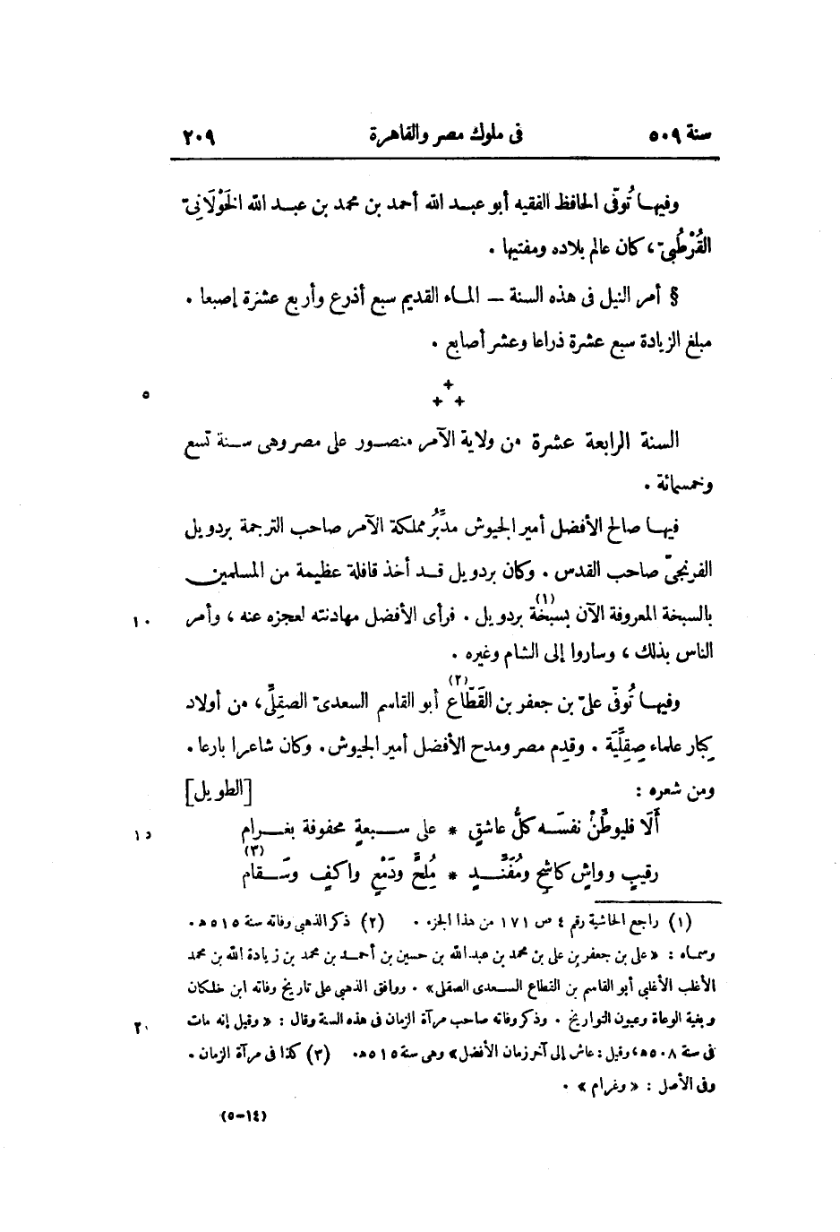 السنة الرابعة عشرة من ولاية الآمر منصور على مصر وهى سنة تسع وخمسمائة.
