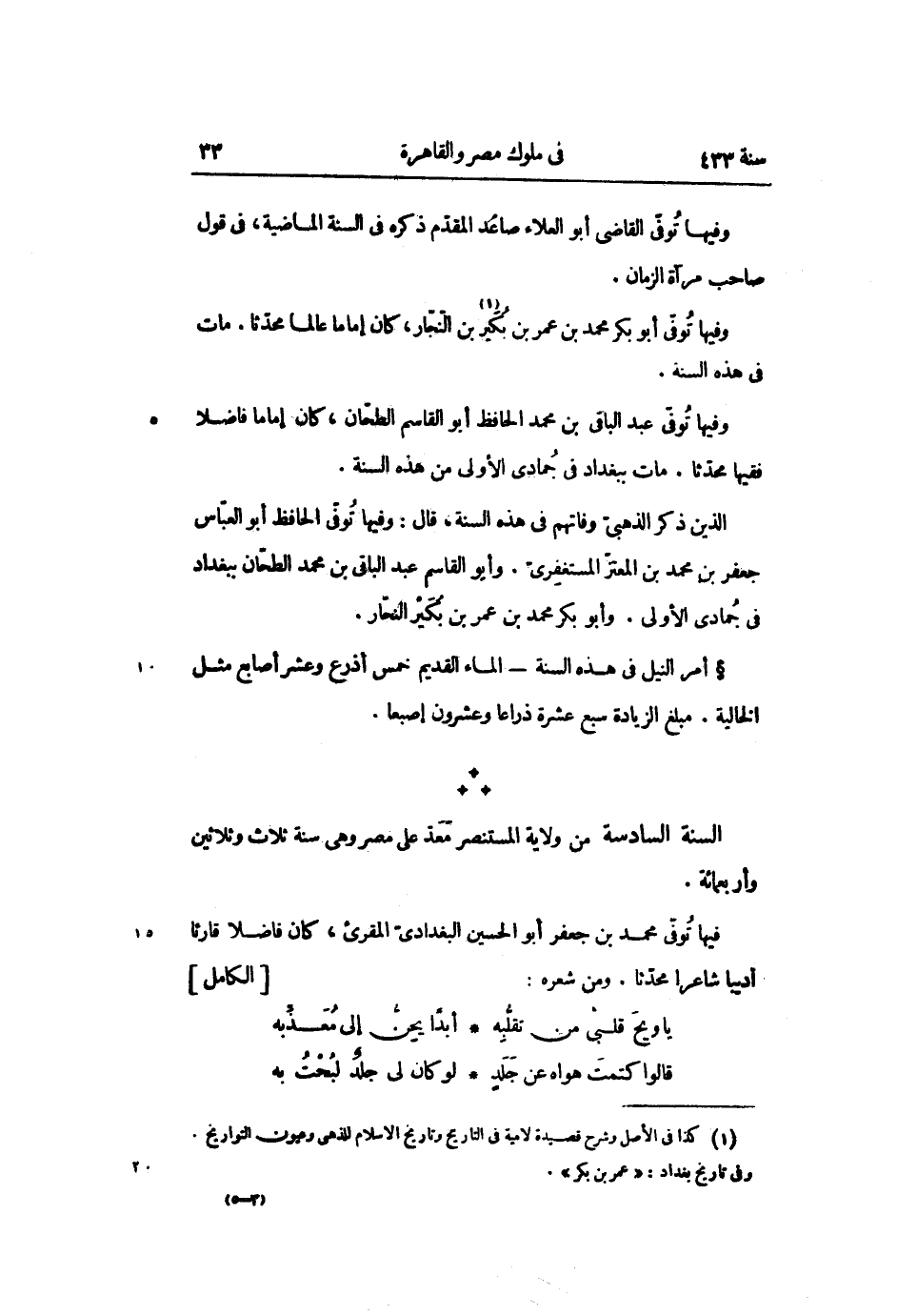 السنة السادسة من ولاية المستنصر معدّ على مصر وهى سنة ثلاث وثلاثين وأربعمائة.